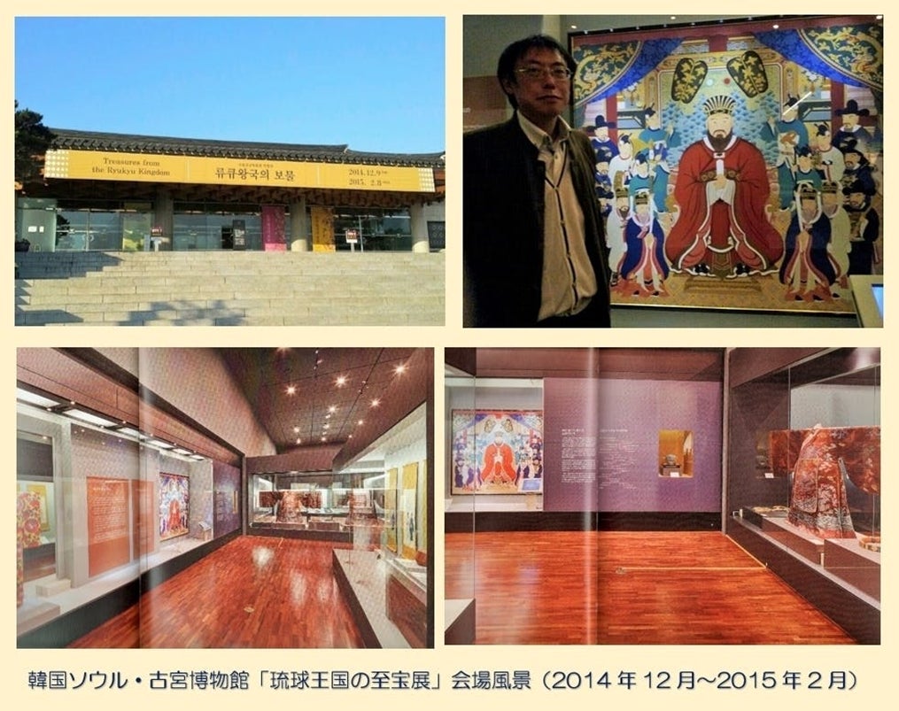 2013~14年の韓国留学で、不明の「御後絵」描法を探索して、関連の深い朝鮮国王肖像画描法「肉理紋」を習得しましたが、指導いただいた韓国の画家・權五昌先生の計らいもあり、2014~15年にソウルの古宮博物館で開催された「琉球王国の至宝展」にて国宝を含む多くの琉球の文物とともに再生した「尚真王御後絵」が展示され、約2カ月の期間で35万人の鑑賞者が足を運びました。