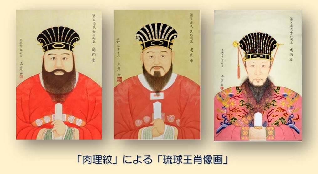 これまで、15~19世紀の琉球王朝時代に描かれ1945年の沖縄戦で行方不明となった琉球国王肖像画「御後絵(おごえ)」について、様々な視点からアプローチしてまいりましたが、その度に多くの人々や文物・資料と出逢い「琉球絵画」の奥深さの一端を実感することができました。その中でも、今回ご紹介した朝鮮国王肖像画「御眞(オジン)」の描法「肉理紋(ユッニムン)」(細密着彩)の探求により、これまで幻とされてきた古(いにしえ)の「御後絵」描法を現代に再現するという大きな試みへと繋がってまいりました。