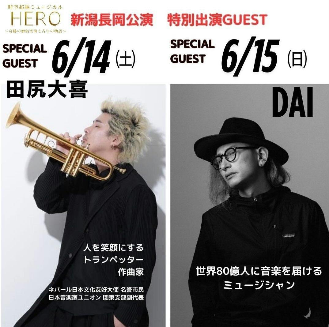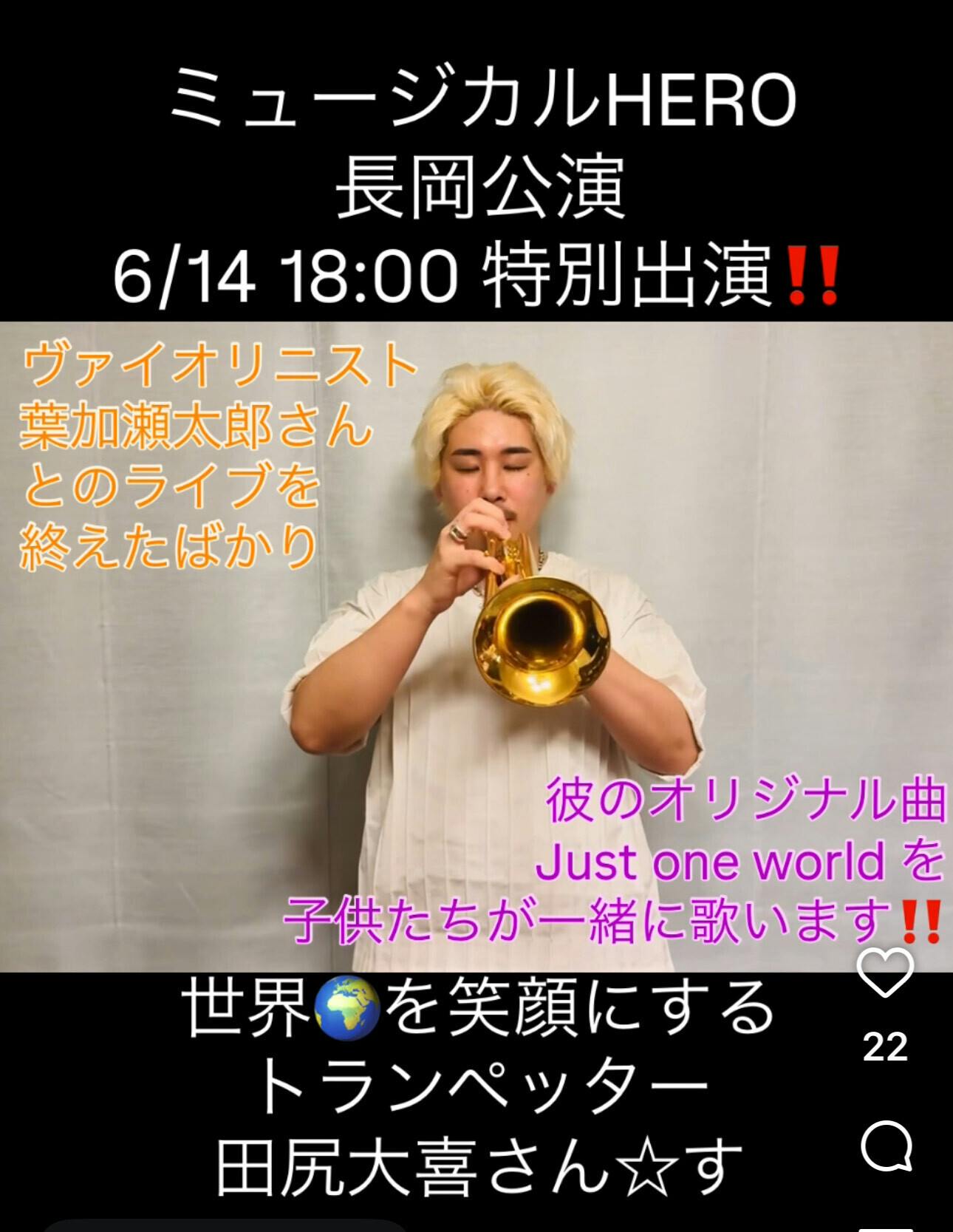 2025/06/10 12:24特別スペシャルゲストのご紹介!!時空超越ミュージカルHERO 〜奇跡の僧侶 空海と青年の物語〜 新潟・長岡公演 6/14 18:00 、 6/15 14:00まずは、6/14のスペシャルゲストは、世界を笑顔にするトランペッター 田尻大喜さん!!ヴァイオリニスト葉加瀬太郎さんとのライブを終えたばかりの田尻大喜さん☆世界の平和を願い作られた彼のオリジナル名曲『Just one world』を劇中で子供たちと一緒に歌って頂きます舞台後のアンケートで多くの方が『感動した』『涙した』とメッセージを残された名曲です子供たちとのコラボレーション是非、観て感動を持って帰られて下さい☆◆チケットはまだ有りますhttps://www.instagram.com/reel/DKoPkOkyqRV/?igsh=MWkyY2p0MDc1c2p2aQ==そしてそして!!6/15 13:30 からの公演での特別スペシャルゲストは、、、、「ロックバンドおかん」のボーカル・DAIくん!!次回の報告は、DAIくんのビデオメッセージと共に☆総合プロデューサー 松岡春和 もっと見る