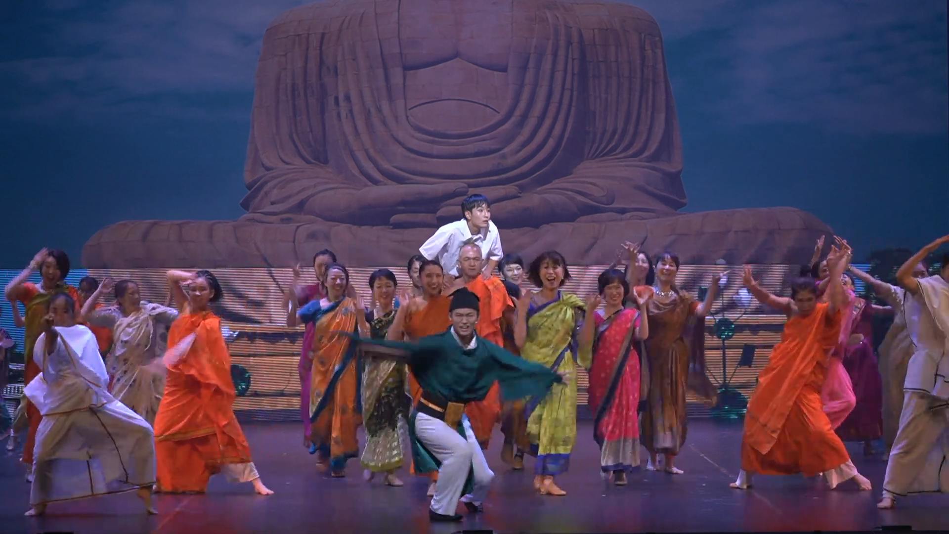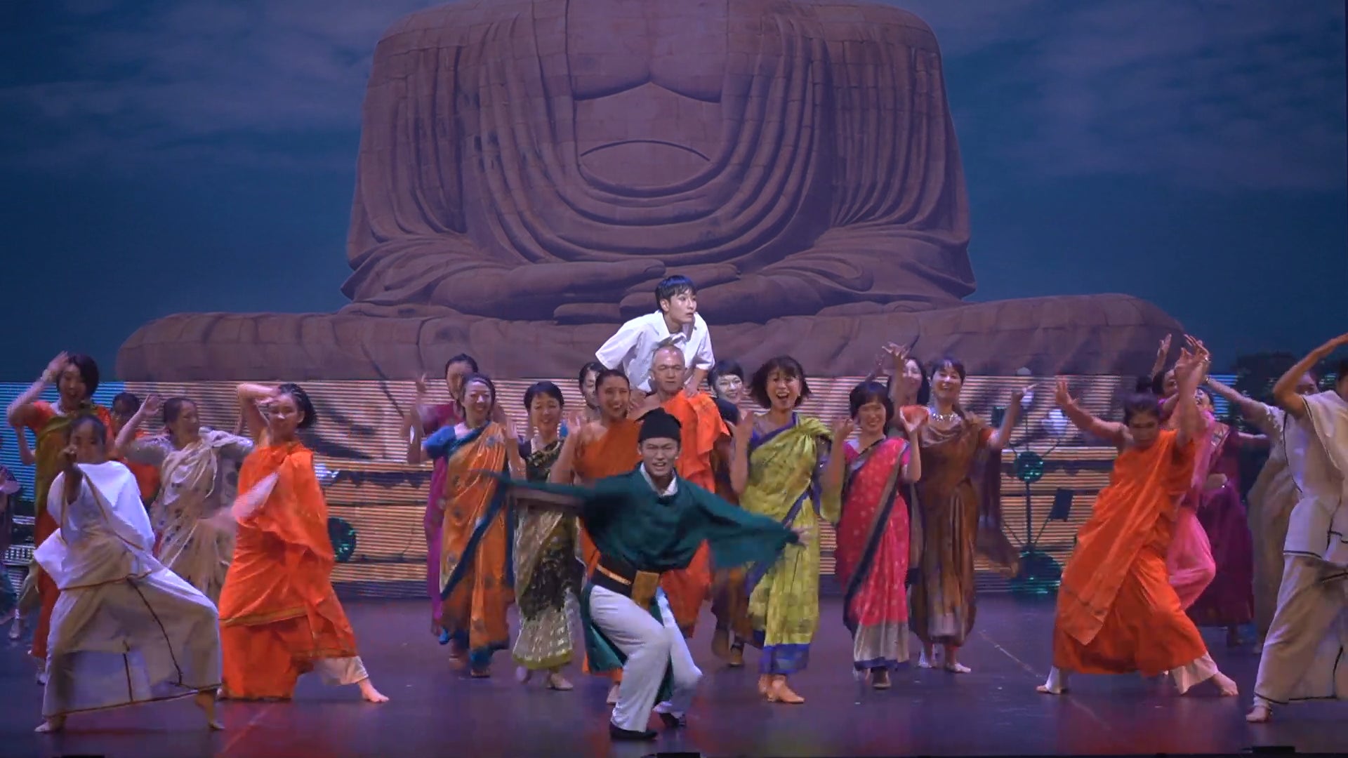 舞人と空海を巻き込んで、歌あり、踊りあり、笑いあり、どちらかと言うと「賑わい」に近い場面が多々あり、歴史的舞台からすると少々元気が良過ぎるほどです。 しかし、よく観ると登場人物の語るセリフや表現する物語のその中に、空海の真の心の声が舞台と言うエンターテイメントを通して、皆さんの心に聞こえてくるやもしれません。