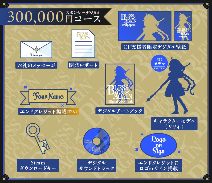 このコースは今作Bless You Againの開発をスポンサーとしてサポートしてくれる方向けのものです。