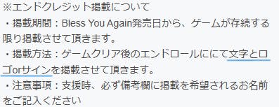 正しくは「ゲームクリア後のエンドロールににて氏名(ハンドルネーム可)を掲載させて頂きます。」となります。