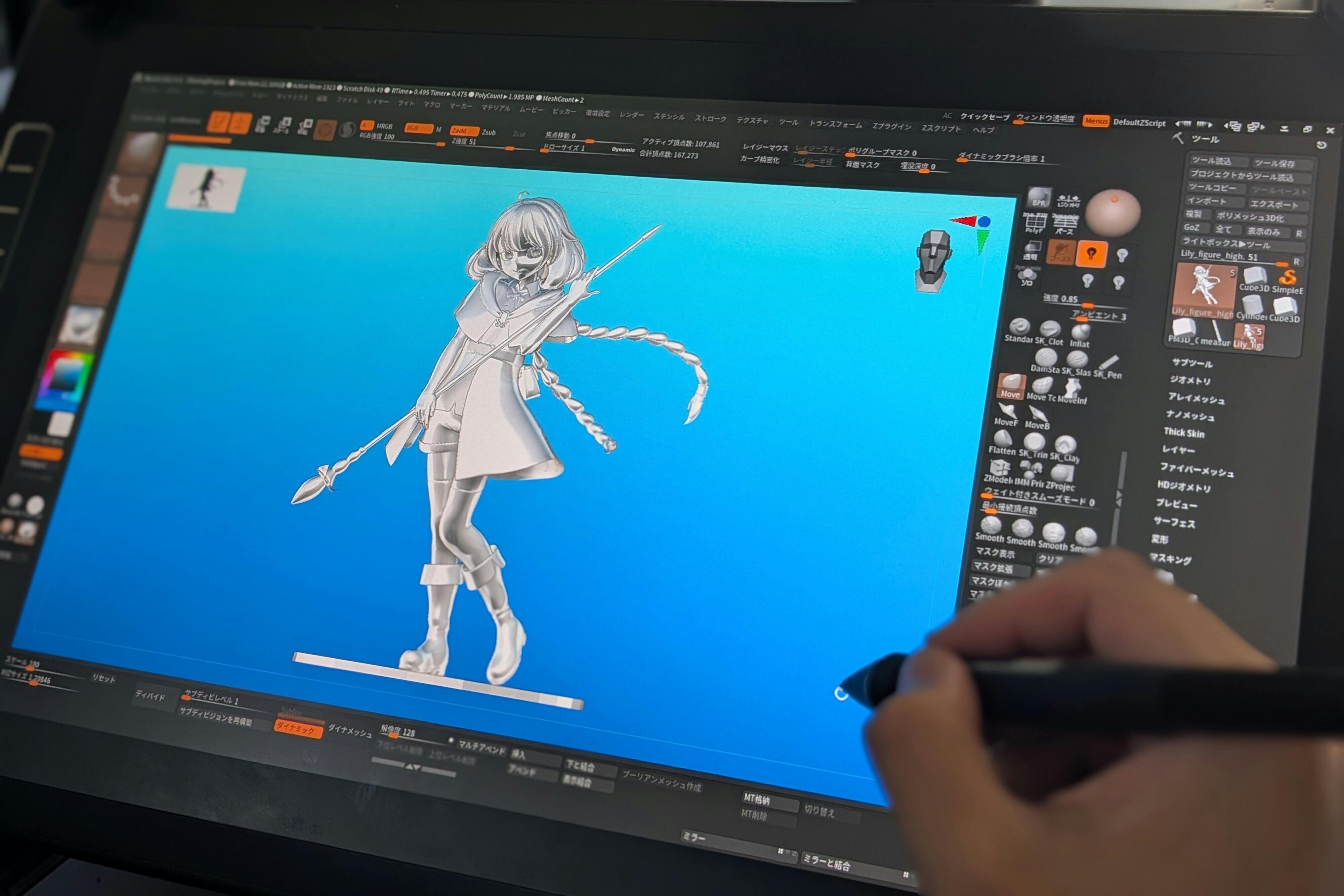 ポーズは現在試行錯誤中ですが、ひとまず仮のポーズを取らせたモデリングツールでの進捗画像も共有させて頂きます。