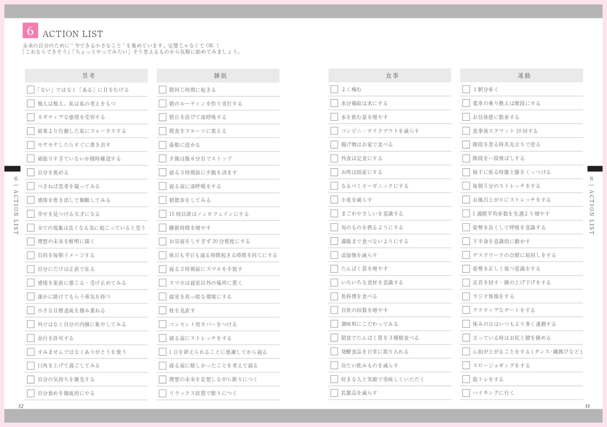 5つのカテゴリーと、すぐに実践できるアクションリストで行動をサポートします。