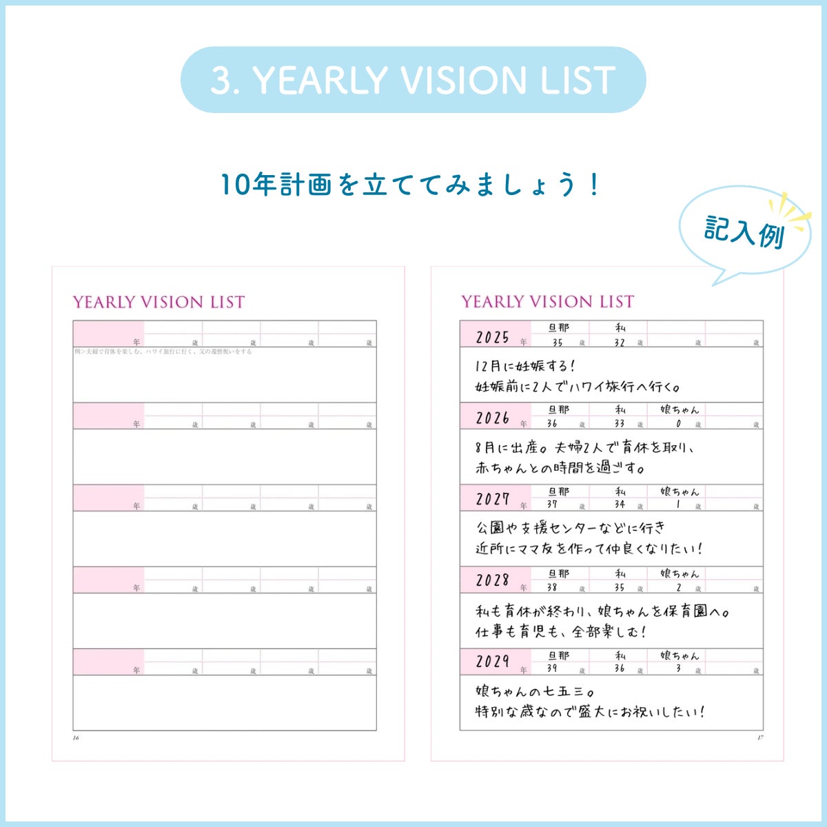 30年先まで続く幸せの土台を、今この手帳から一緒に育てていきたいと考えています。