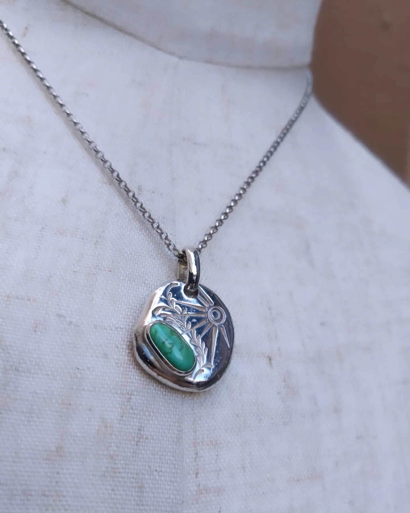 本日ご紹介する作品はキャリコレイクターコイズを使用したペンダントトップになります☆