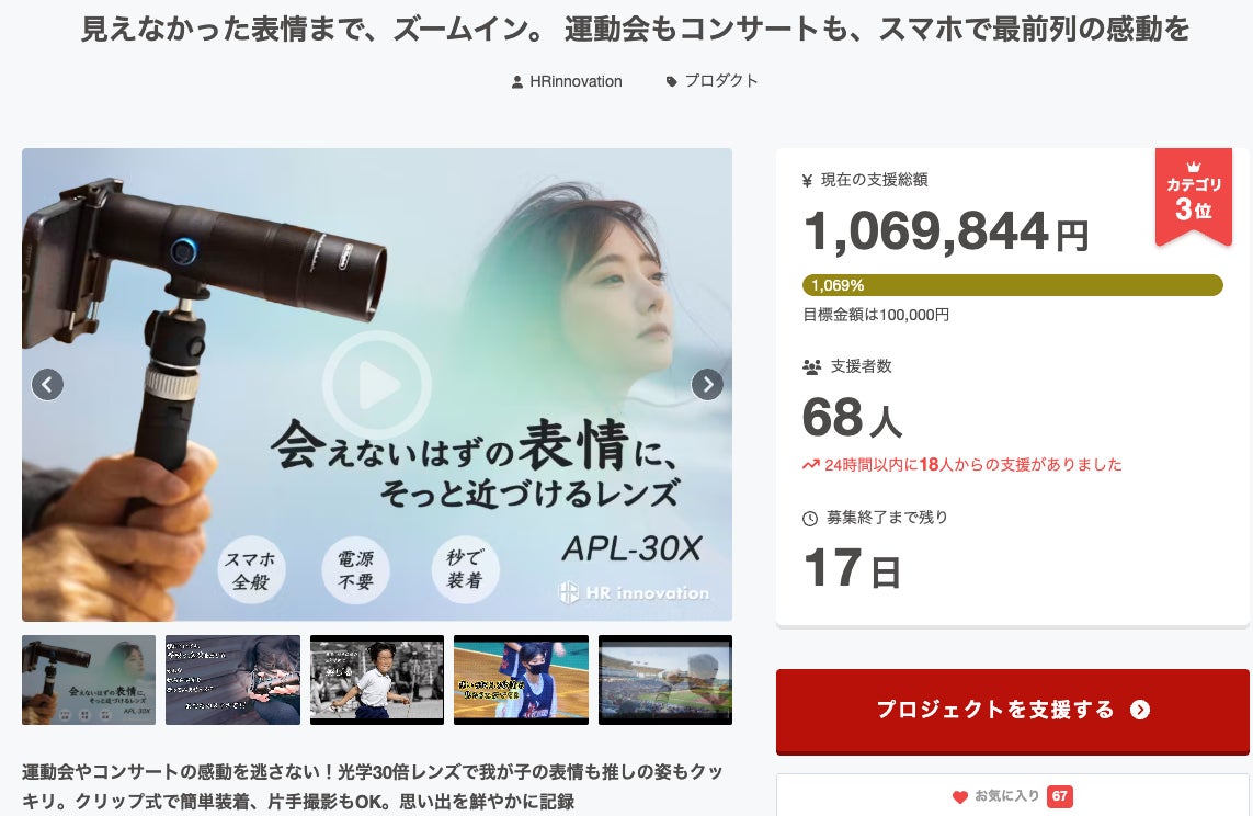 おかげさまで、スマホに装着できる望遠レンズが、累計売上100万円を突破しました!