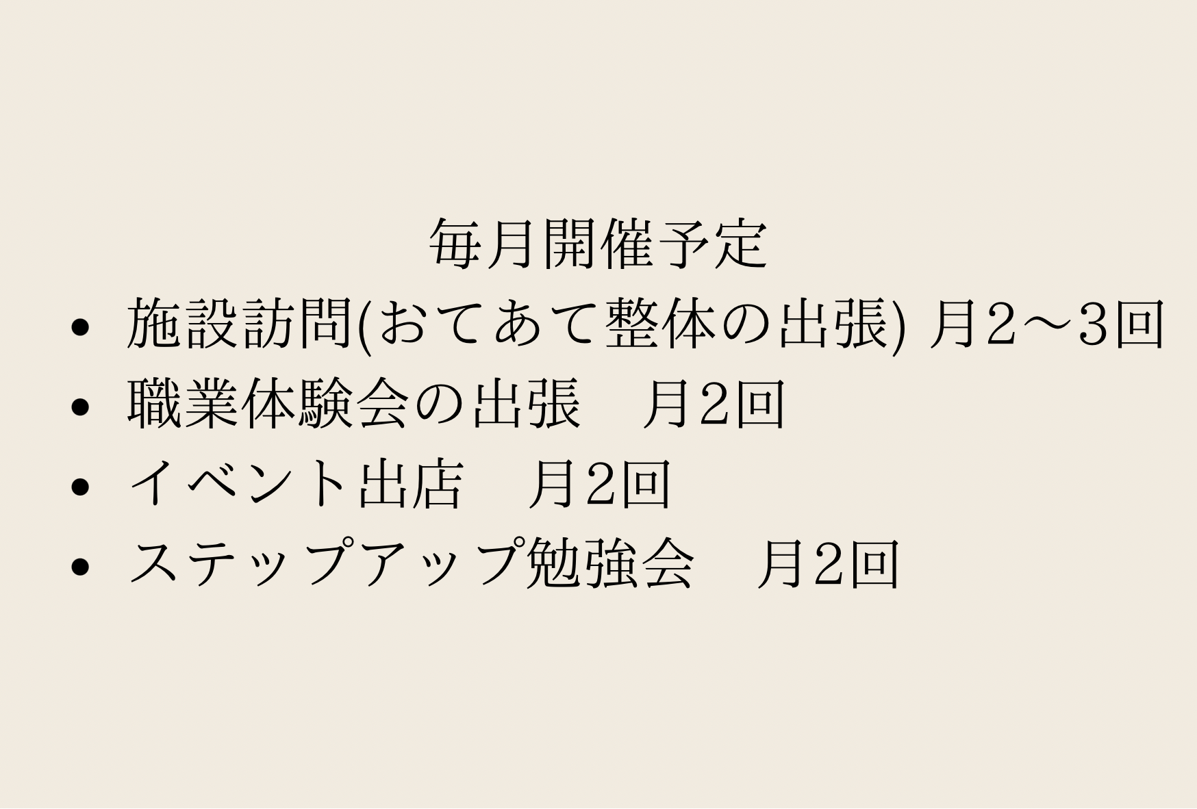 これまで、子供食堂やマルシェ出店などで子供たちの整体体験を実施してきました。その結果、多くの子供たちが人に喜ばれることで出来た!!と自信をもつ姿を実際に目の前で見てきました。また、マルシェ出店や施設訪問を通してさまざまな場所での活動を計画し、1年を通して多くの子供たちに参加してもらえるよう準備を進めています。