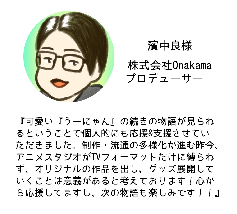 心強いメッセージをありがとうございます!『Hashtag Animation Fes』を一緒に立ち上げたあの頃から、ずっとアニメーションの届け方を模索してきました。今こうして自分たちのオリジナルで挑戦できているのは、あの時のご一緒できたからだと感じております。今後も「うーにゃん」を通して、オリジナルアニメの可能性を広げていけるよう挑戦して行きますので、これからもアニメの新しい形を一緒に作っていけたら嬉しいです!