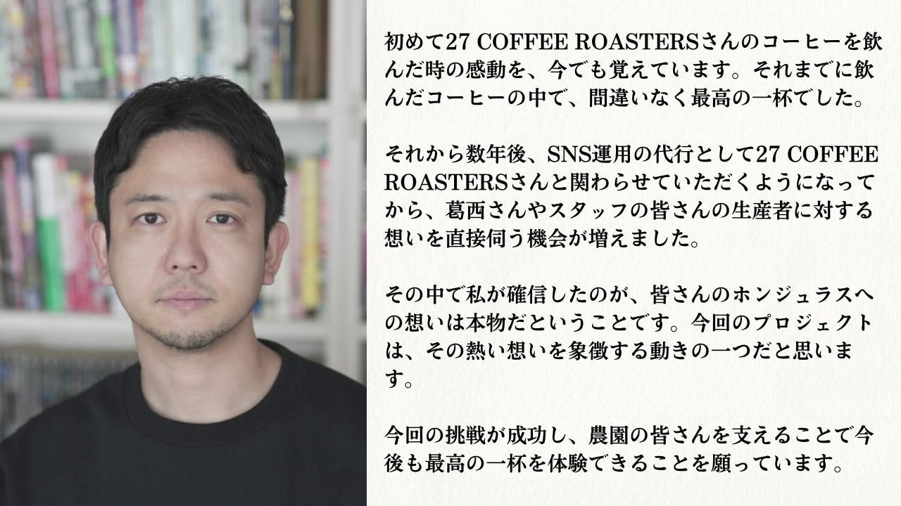 このプロジェクトは、単なるコーヒーの輸入ではなく、ホンジュラス・エルパライソの生産者たちの努力と文化を日本に伝えるという大きな意味を持っています。皆さんのご支援が、生産者たちの未来を切り開き、私たちの暮らしに新たな彩りを加える第一歩となります。