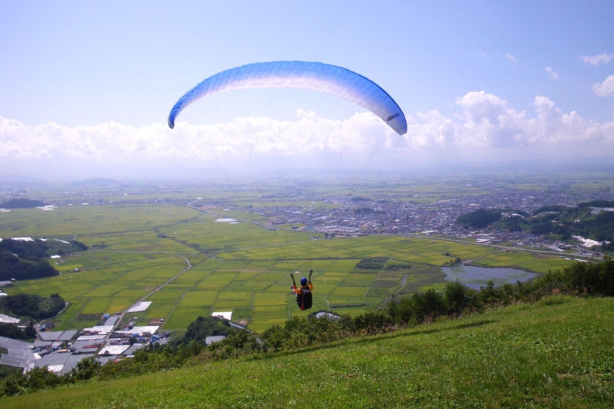 南陽市には、日本で唯一車椅子でパラグライダー体験できる場所があります!