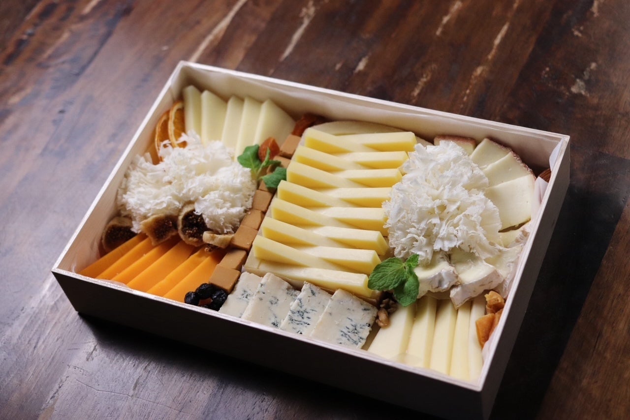 色や形、大きさの異なるチーズを美しく並べたプレートは、食卓のアクセントに最適です。
