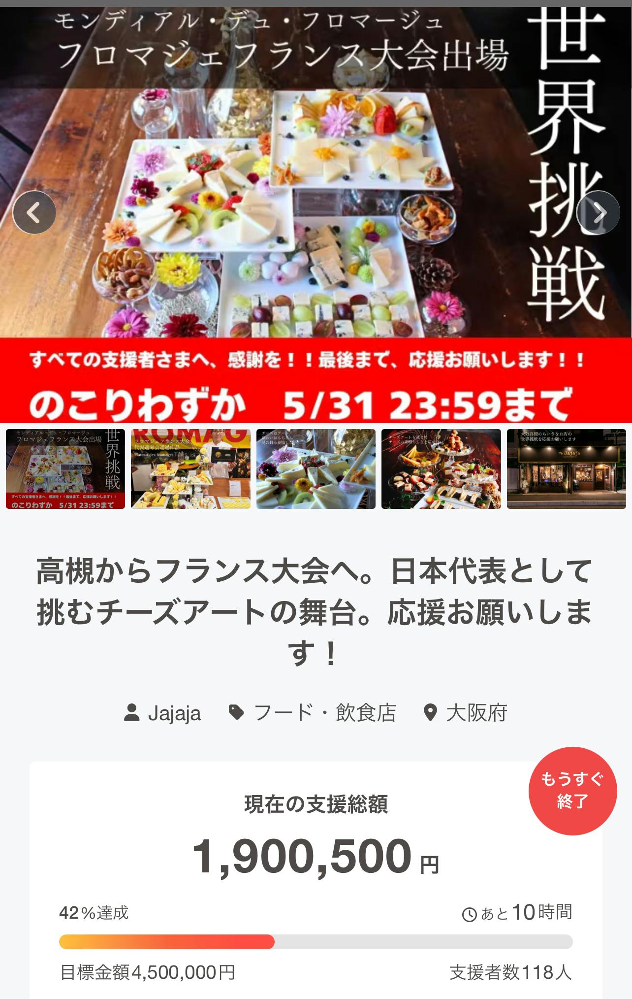 残り10時間で190万達成です!みなさまの熱い熱い声援ありがとうございます♪最終日で190万に到達しました!支援者は118名!ほんとに多くの方々のご支援感謝申し上げます残り10時間ですが、最後まで応援よろしくお願いいたします!