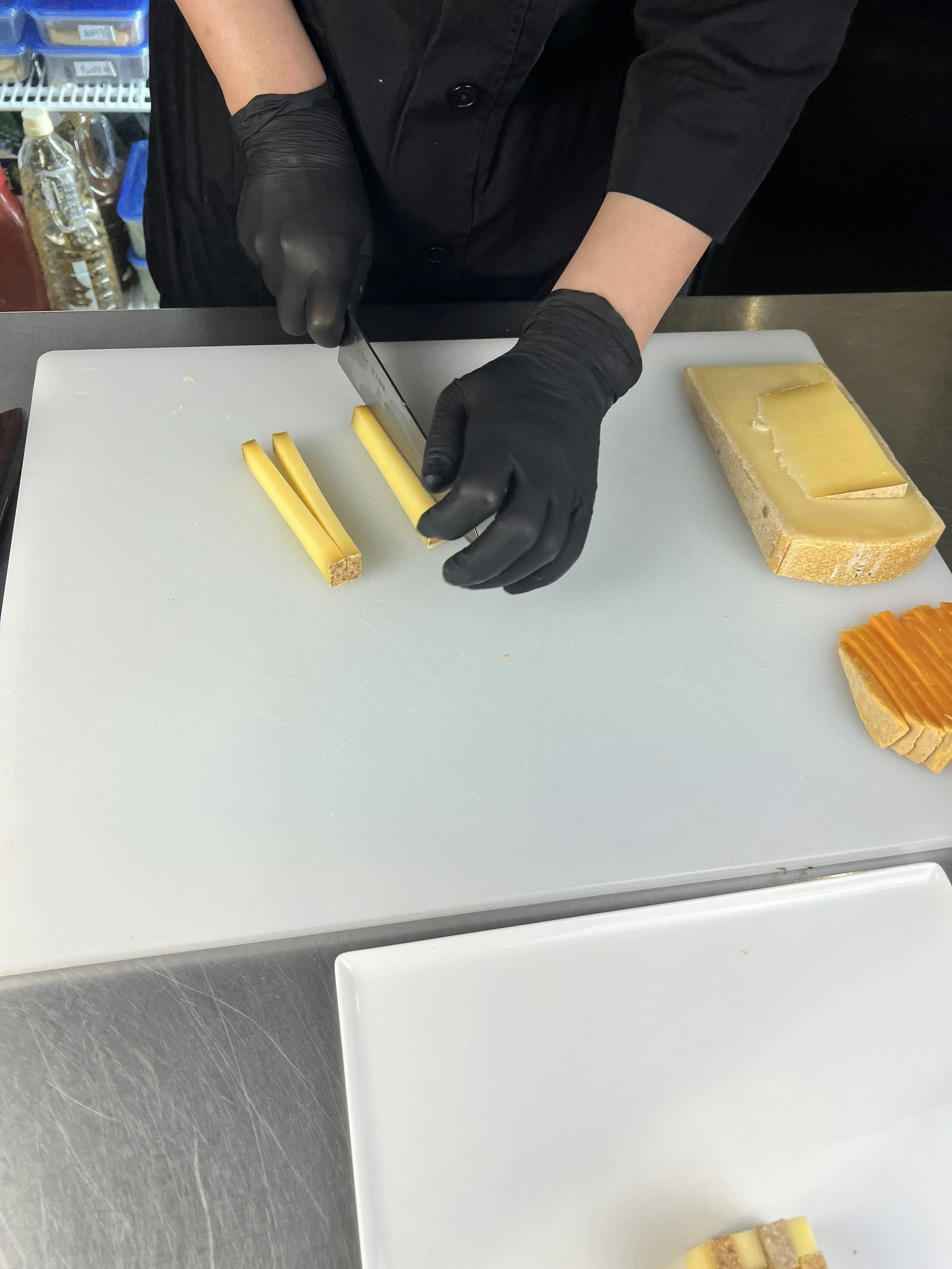 チーズは切り方でも味わいが変わるそうで、カットの仕方も重要なんです!