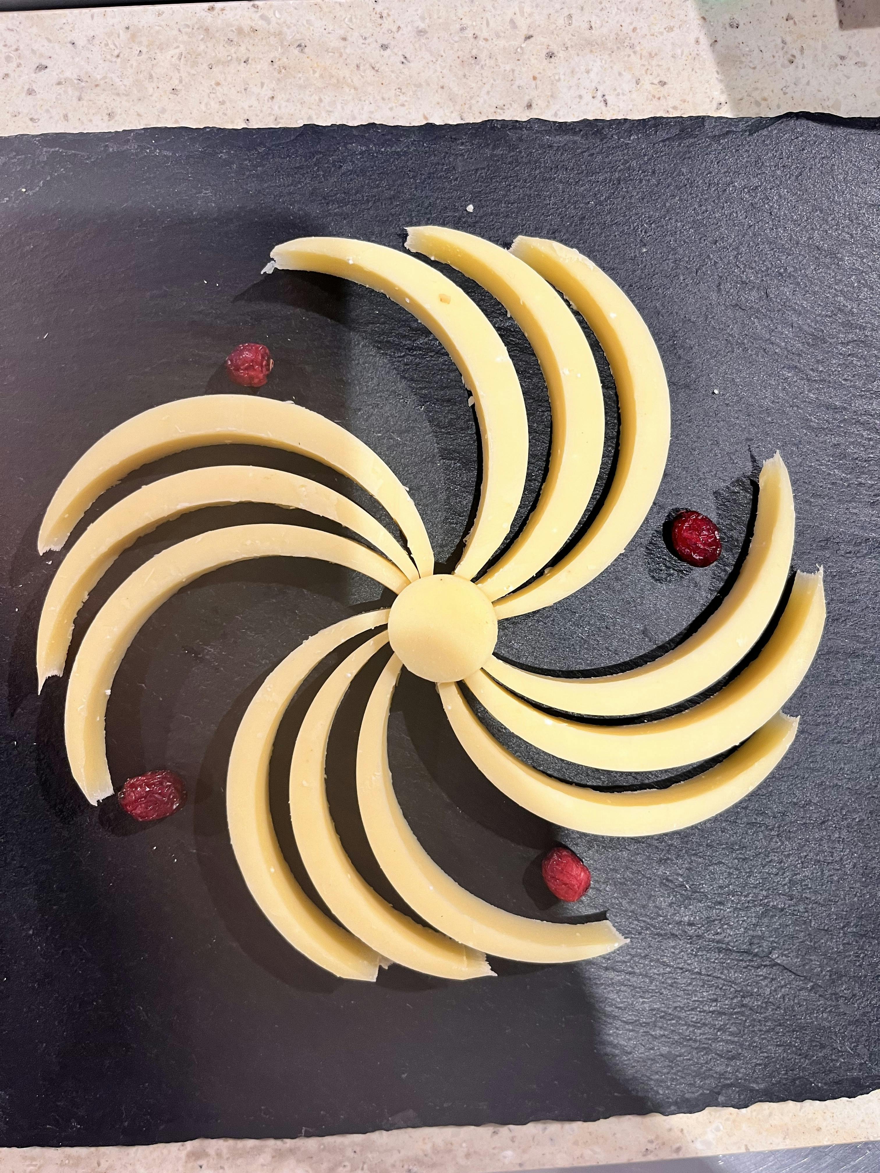 チーズはカットの仕方で味わいが変わる面白さもありますが、チーズアートの世界はなんせ見た目が重視!