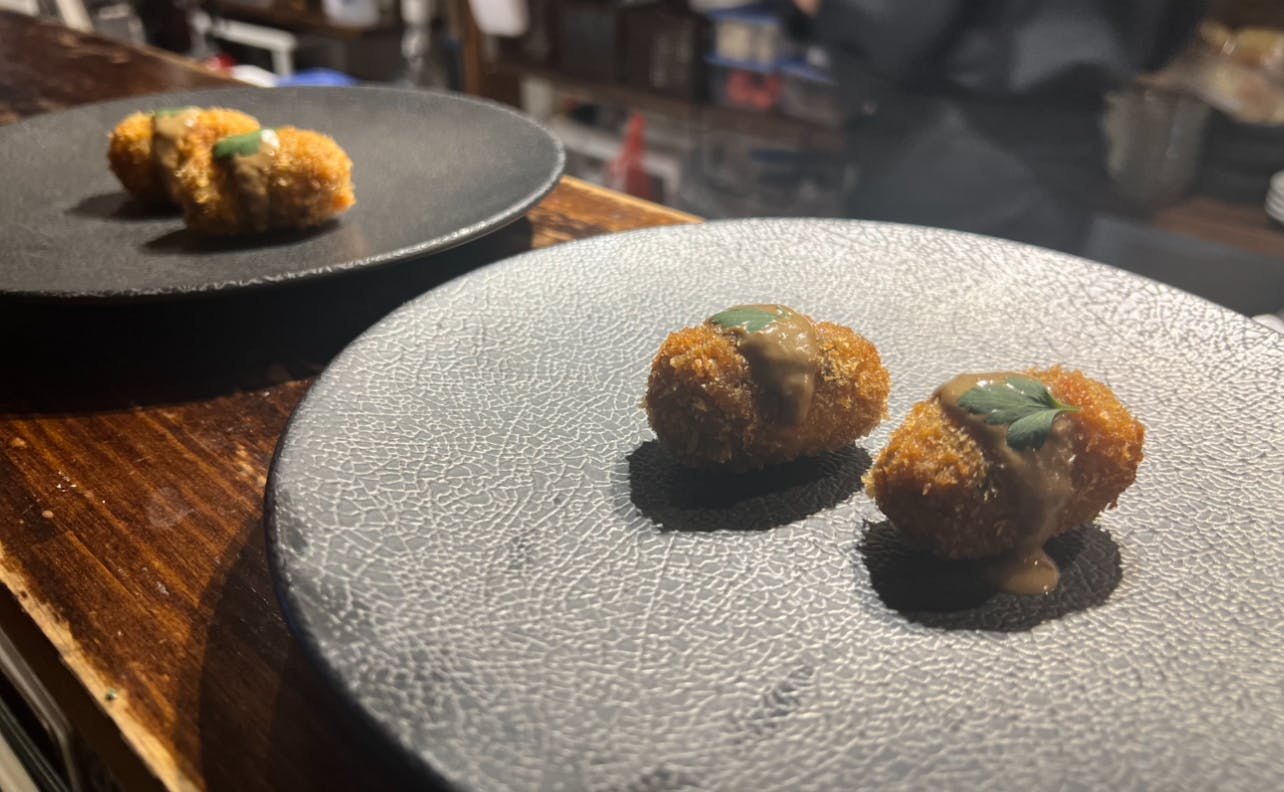 和牛挽肉のアランチーニ ポルチーニ茸ソース