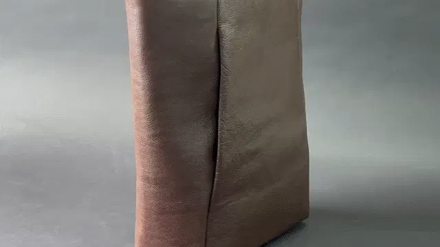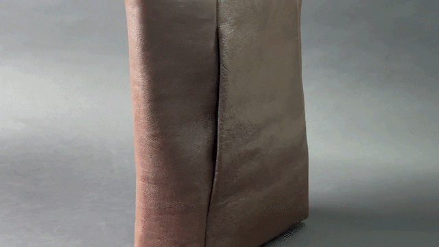 マチ部分に柱となる芯材を設けて、屋根と床部分をステッチでつなぎ合わせるというアイデアで、円柱型と開きやすい開口部を実現することが出来ました。