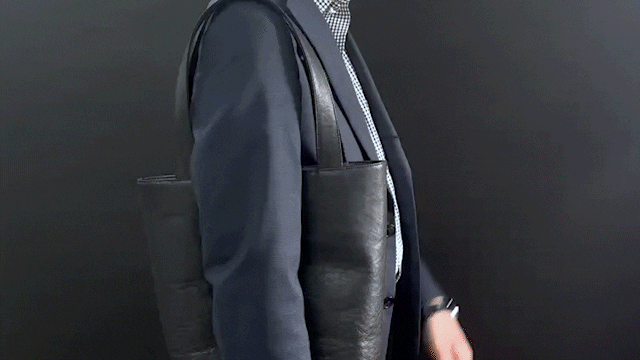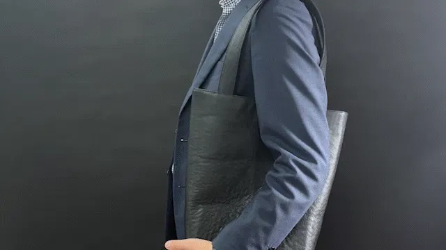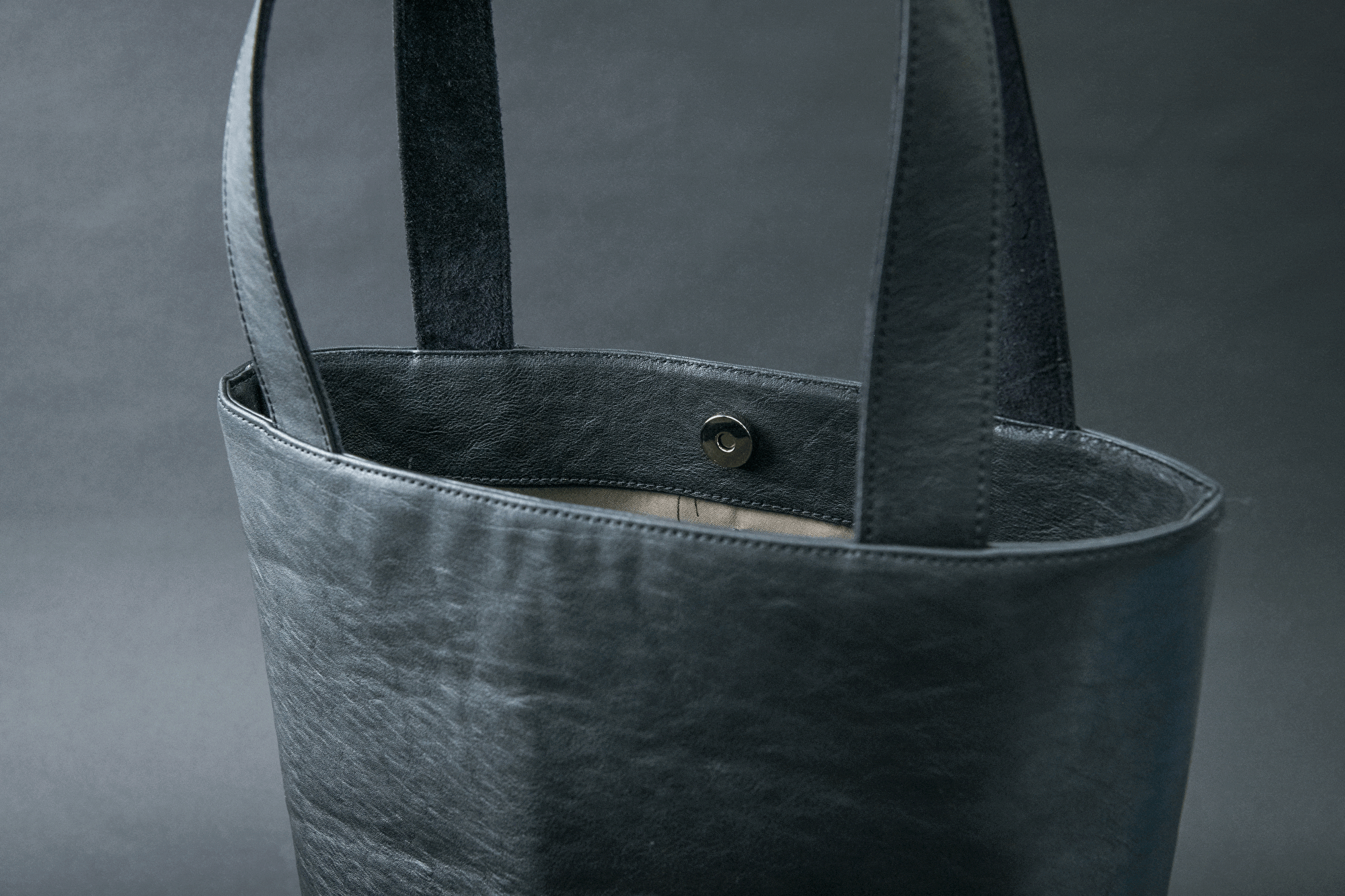 さらに、革の裁断方法や型紙の設計、ボディに使う芯材などに独自の技法を取り入れました。それにより、バッグ開口部が大きく開きやすい形になり、必要なものがすぐに取り出せます。