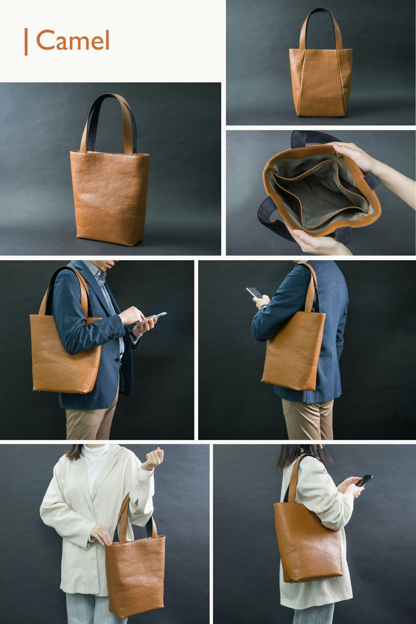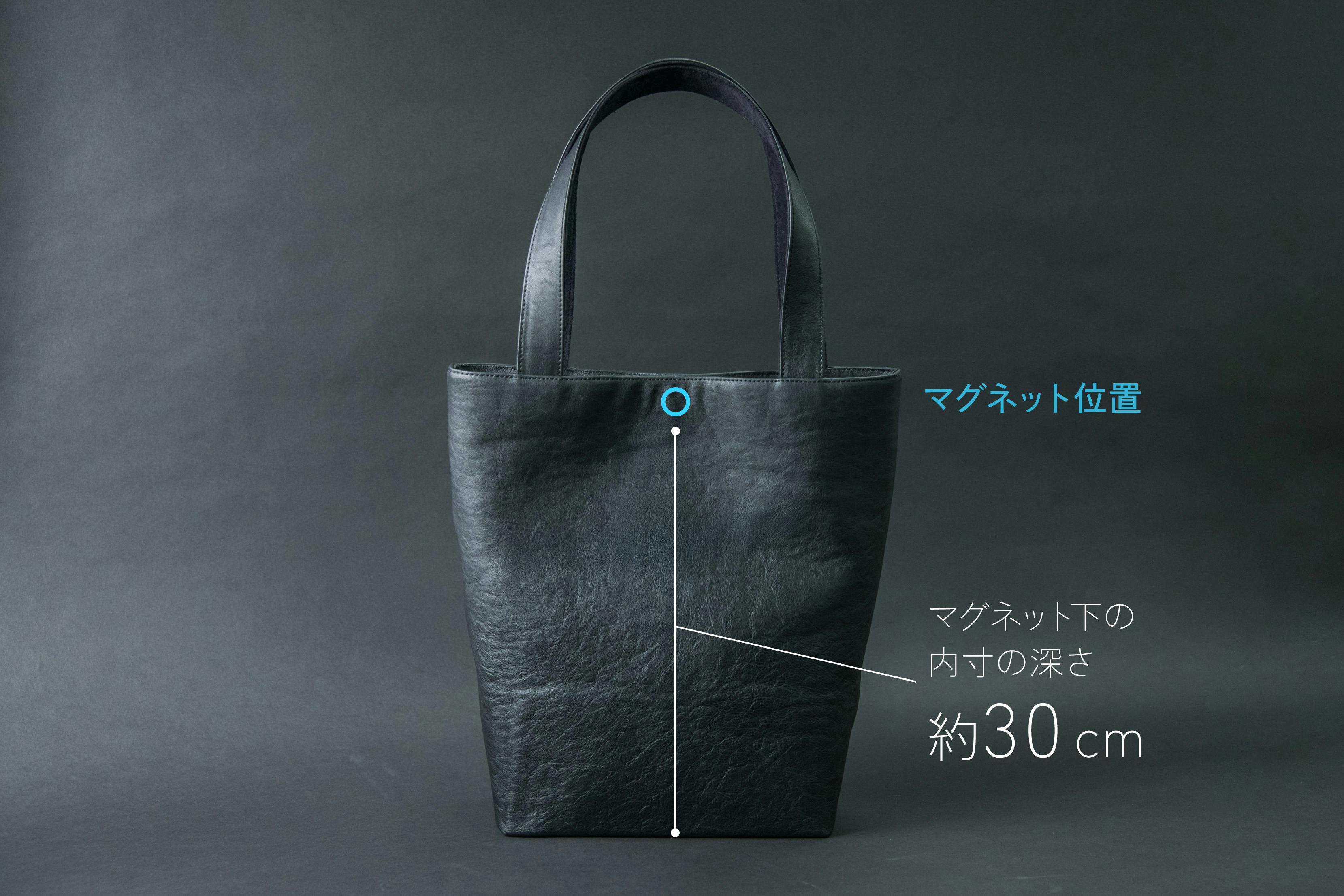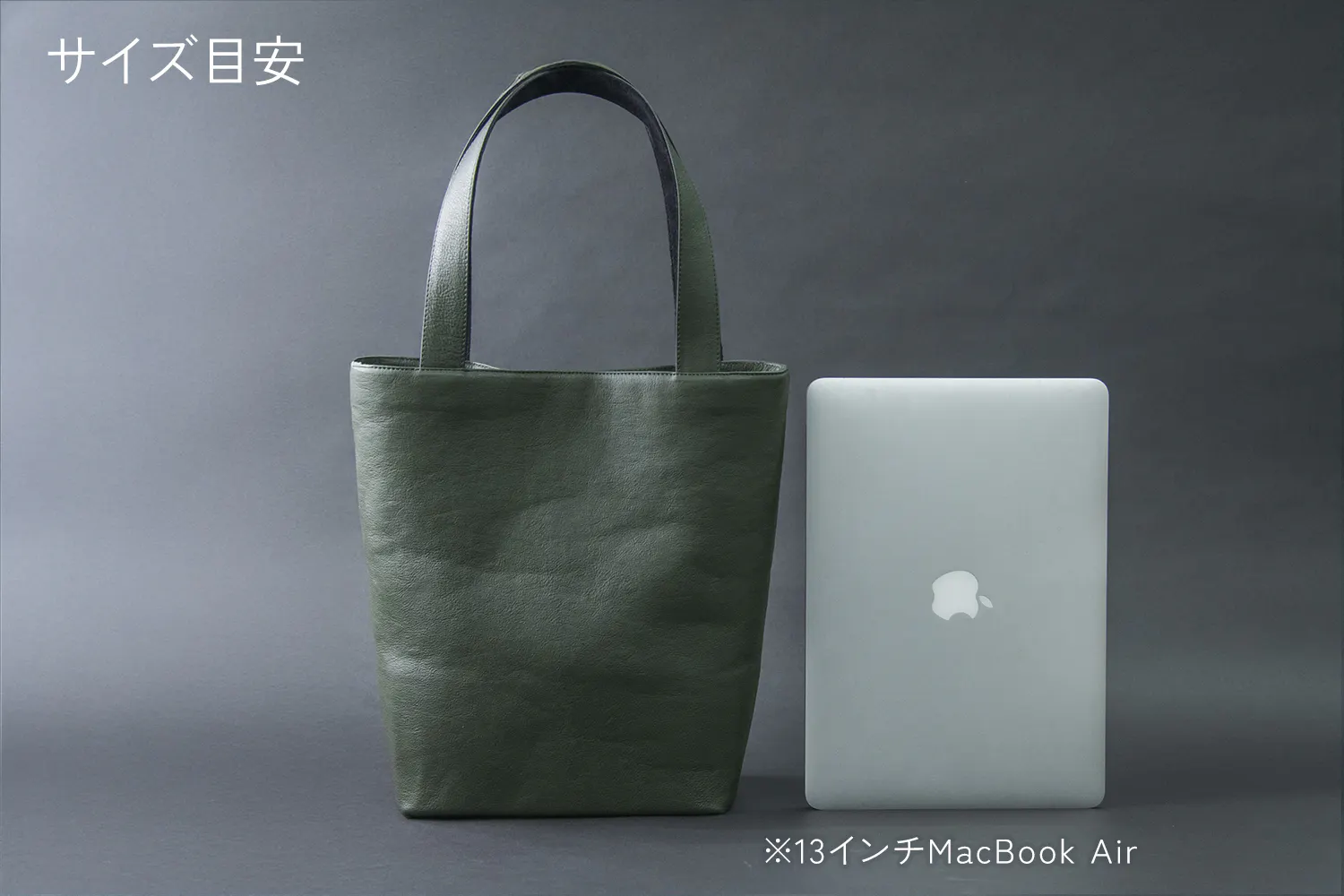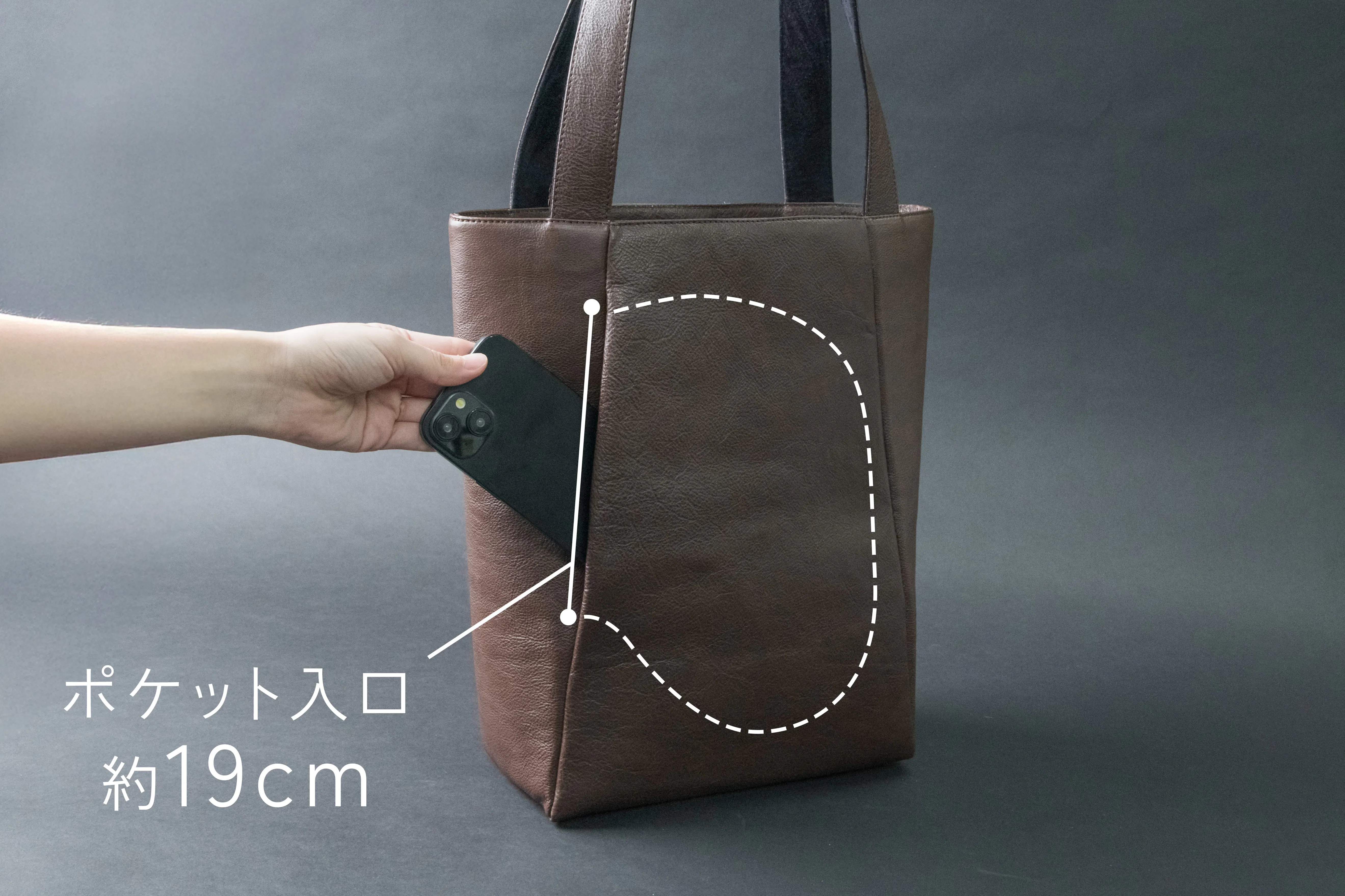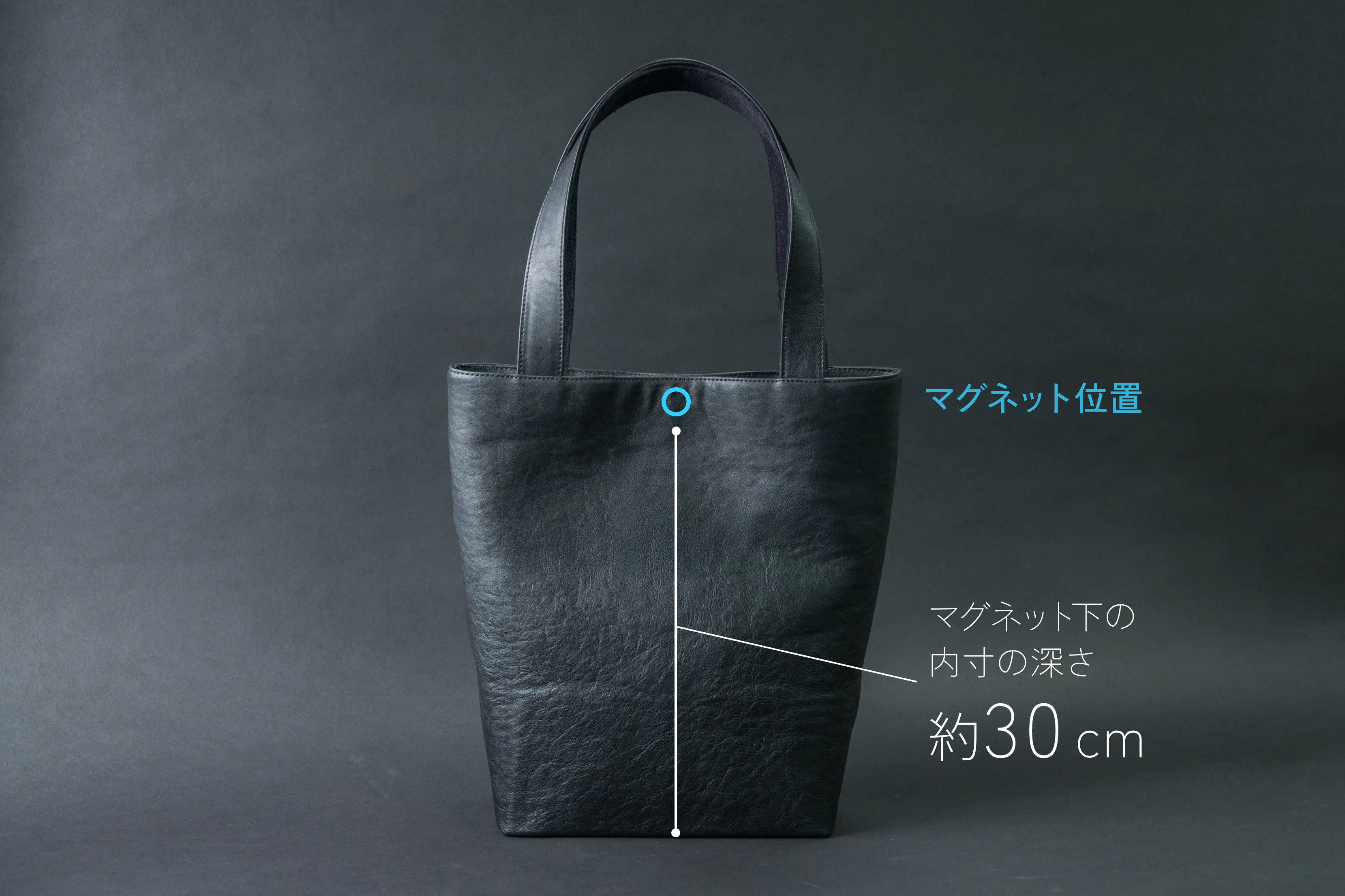 タテ型トートの魅力である見た目のスマートさを保ちつつ、大容量の設計!
