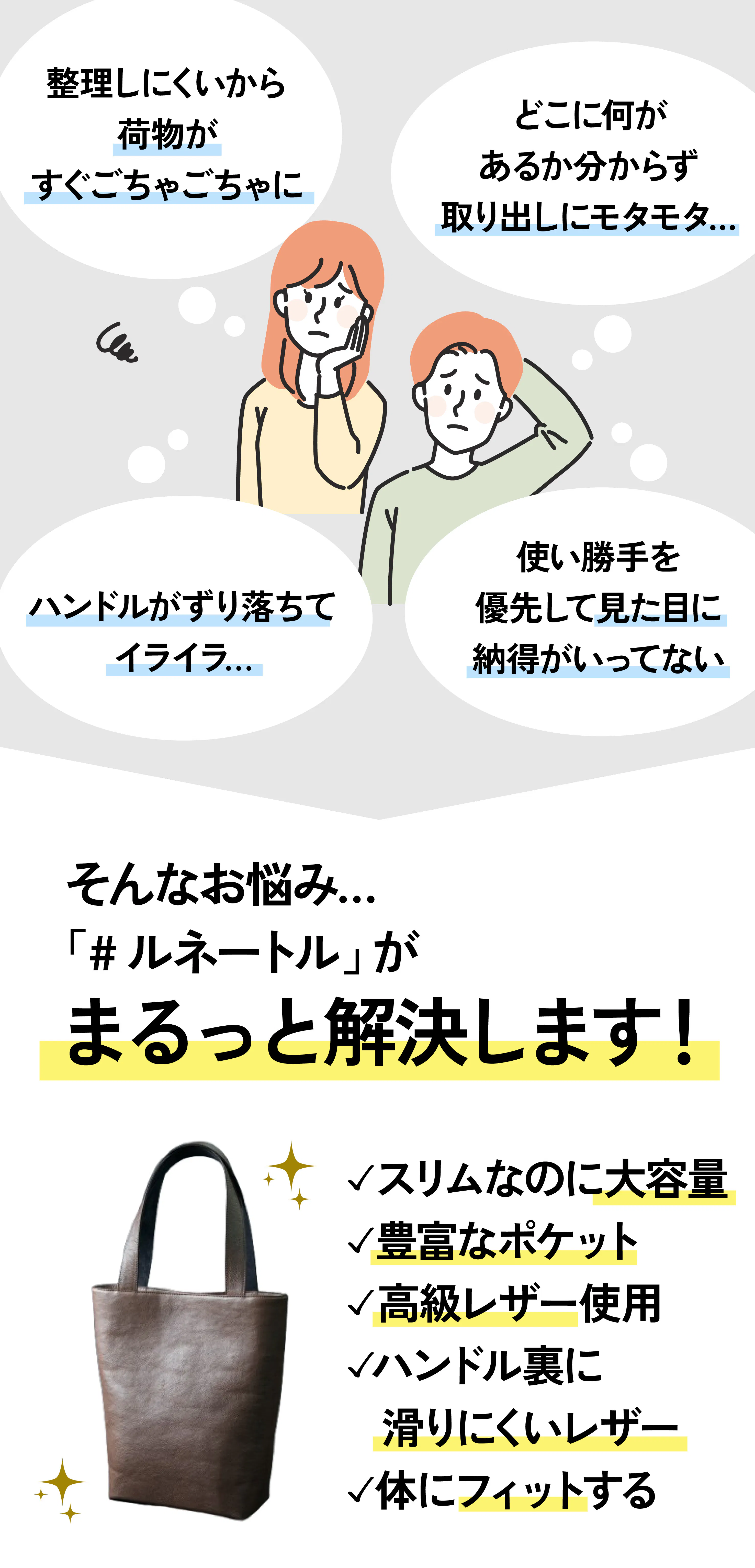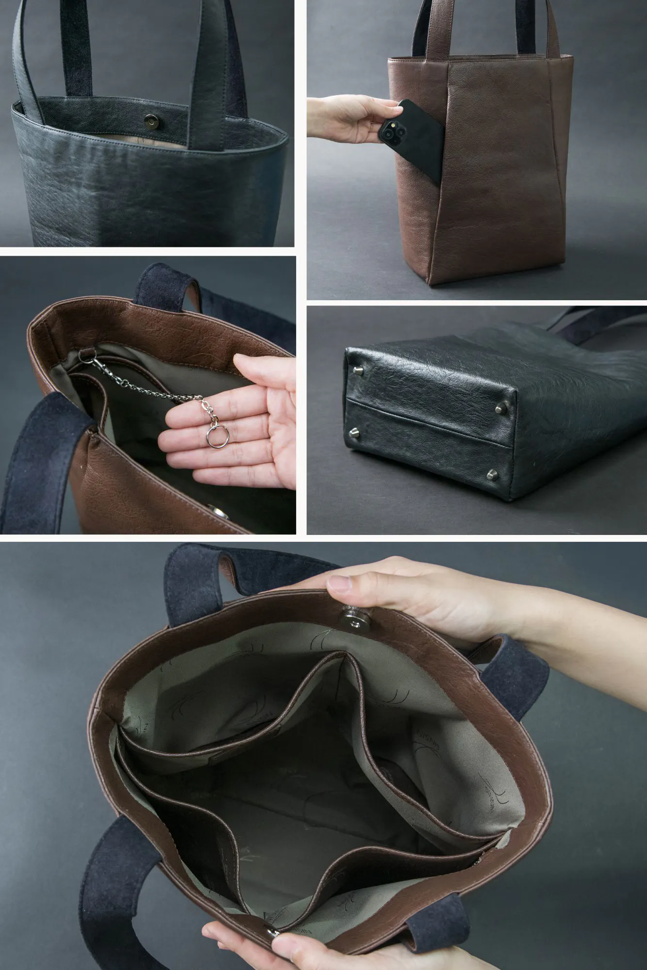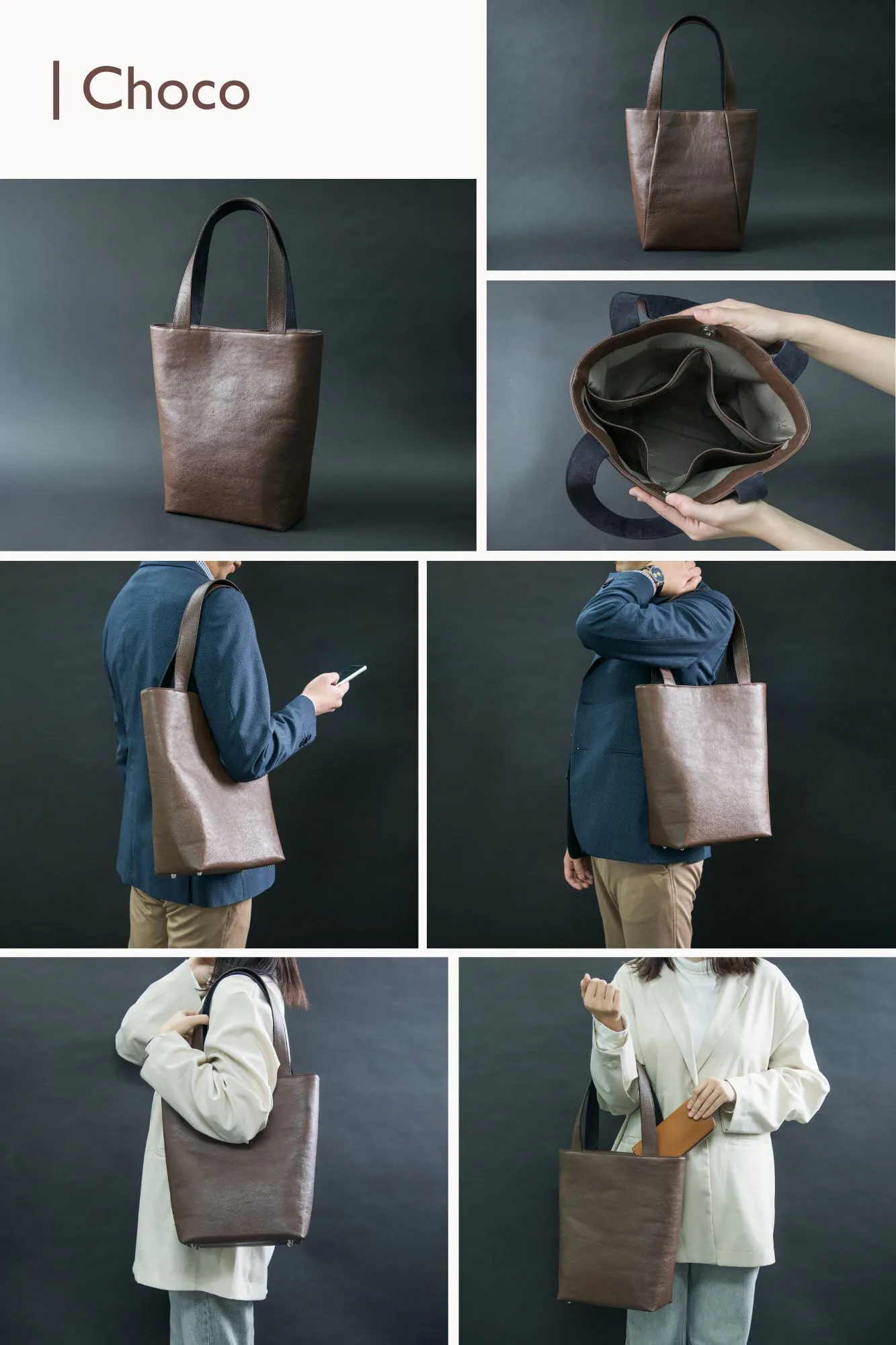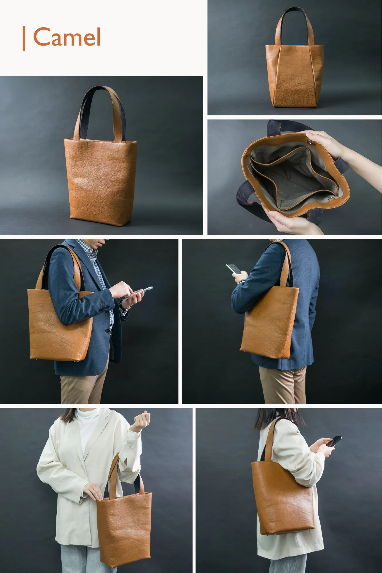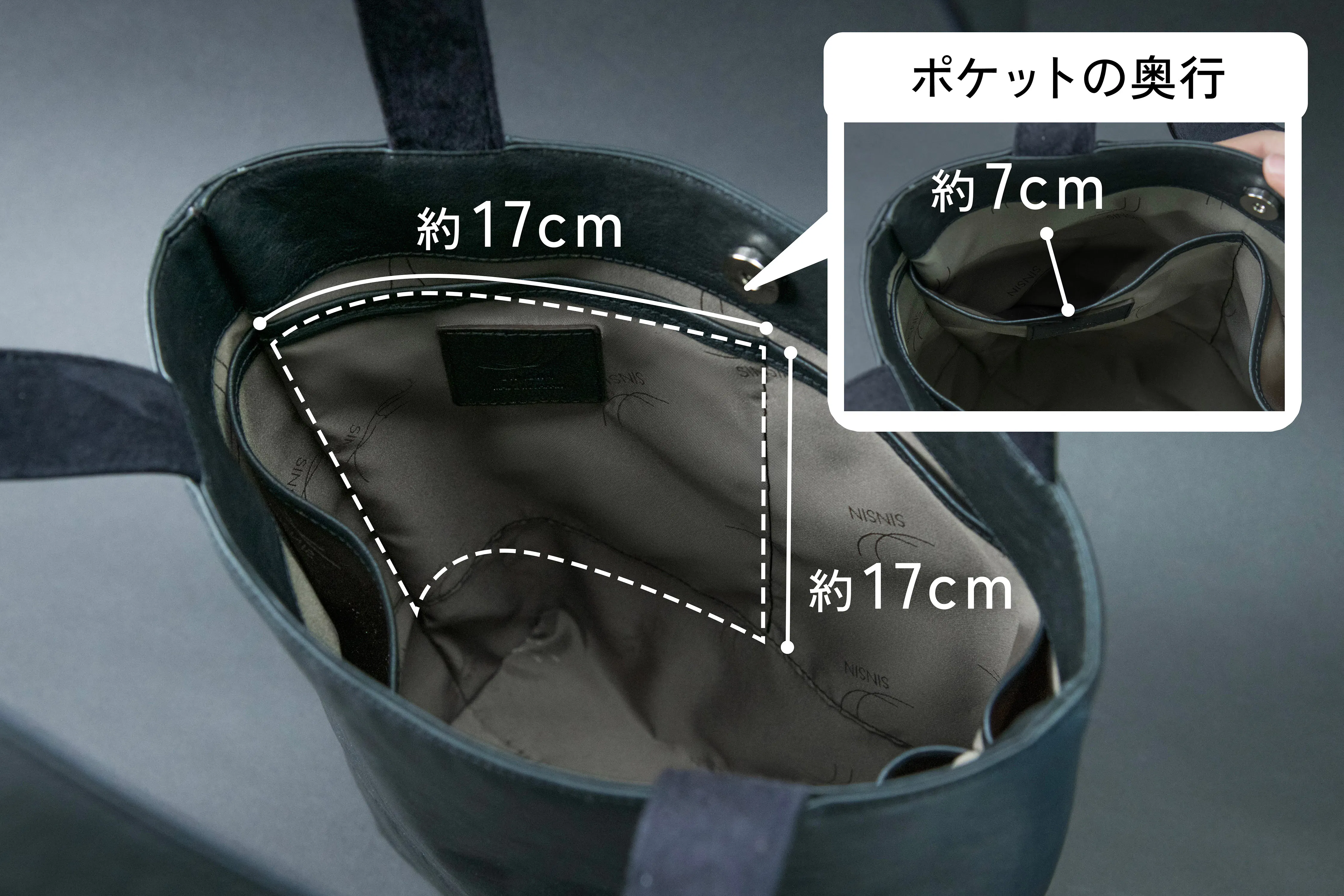 タテ型トートの魅力である見た目のスマートさを保ちつつ、大容量の設計!