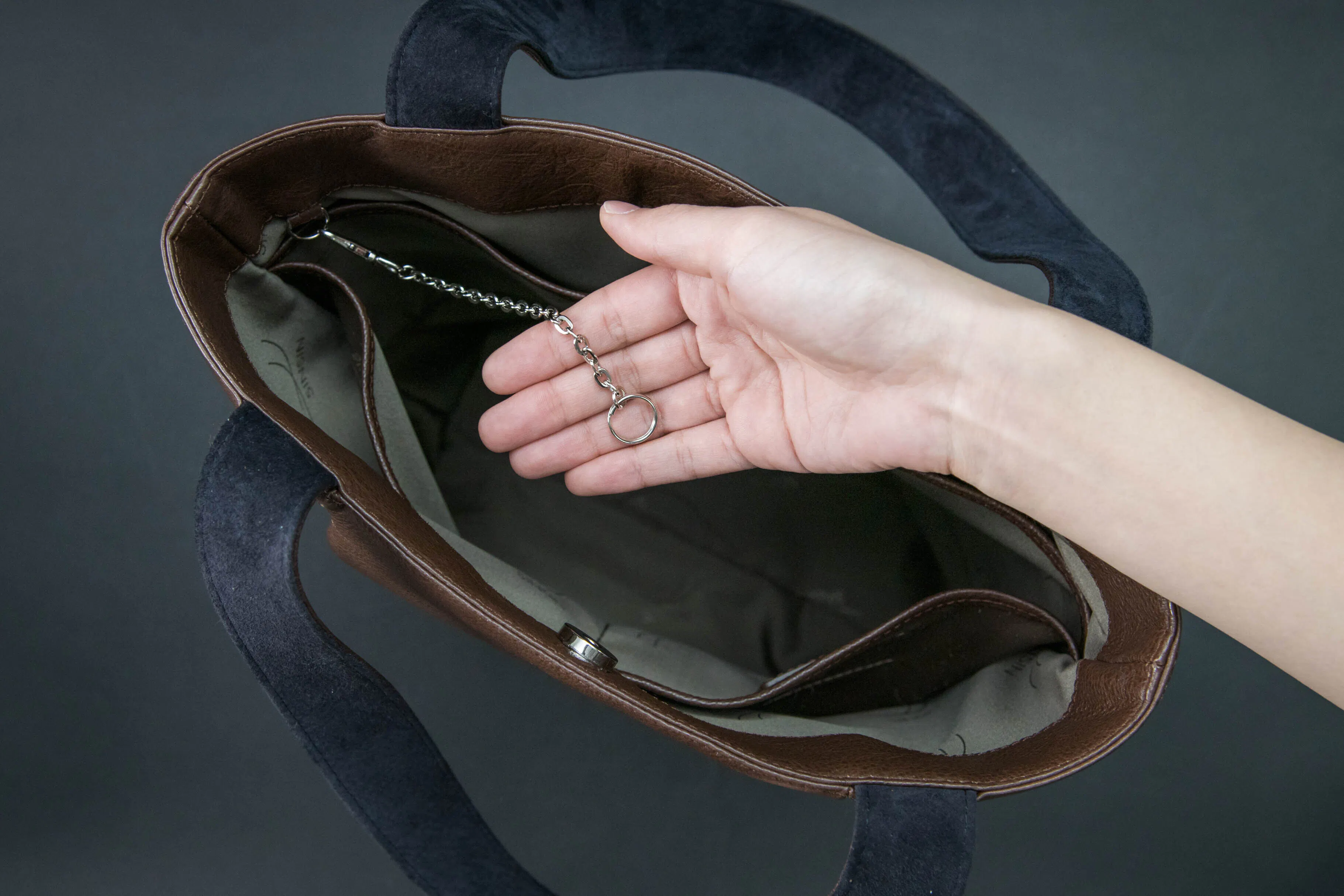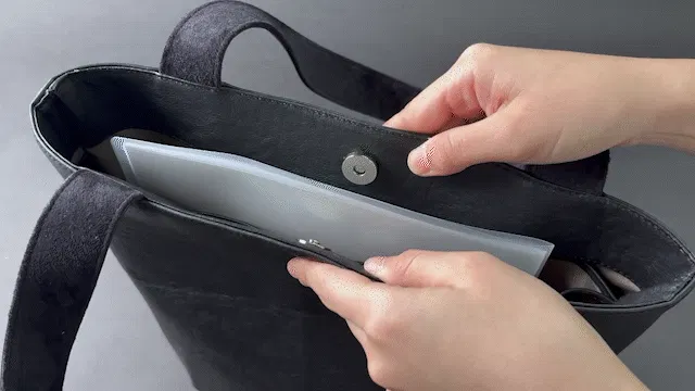 荷物が少ない時には、カバンの口を閉めれるマグネットホックを付属しています。中身が飛び出すリスクを軽減できます。