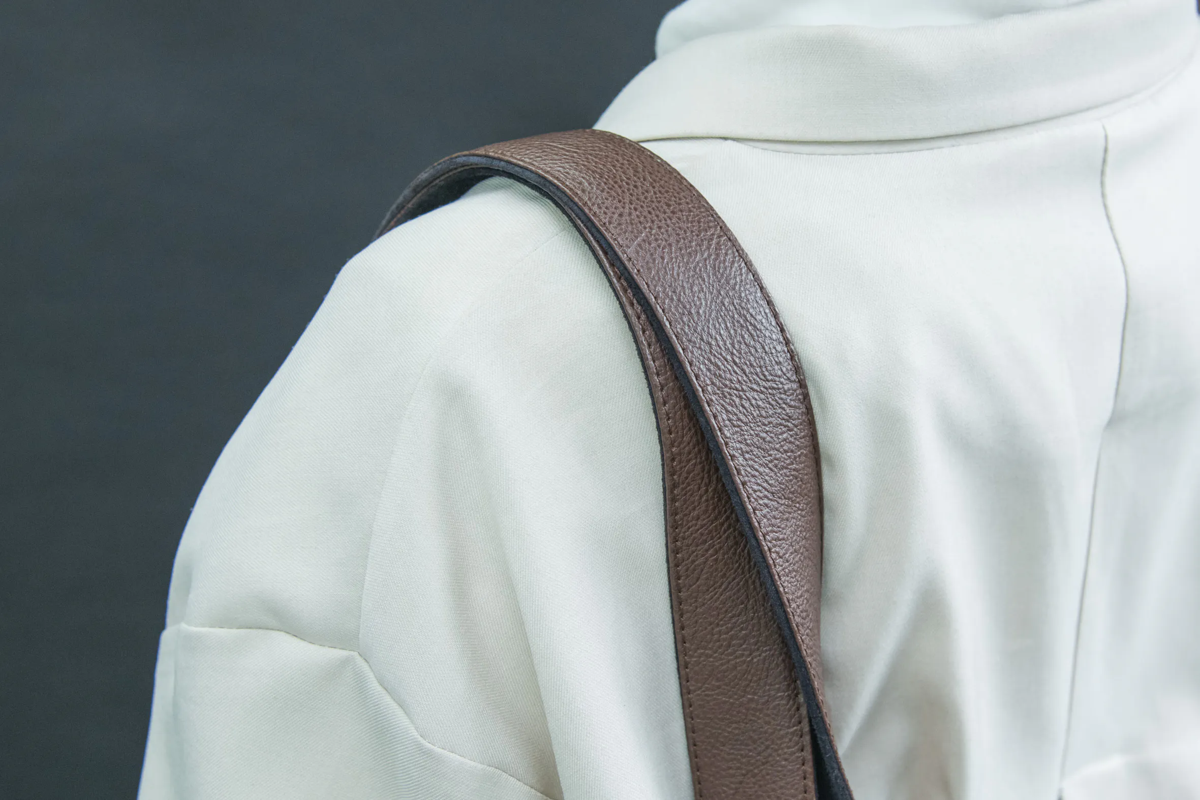 レザーの表面が起毛しており、滑りにくく、肩からずり落ちにくい仕様になっております。