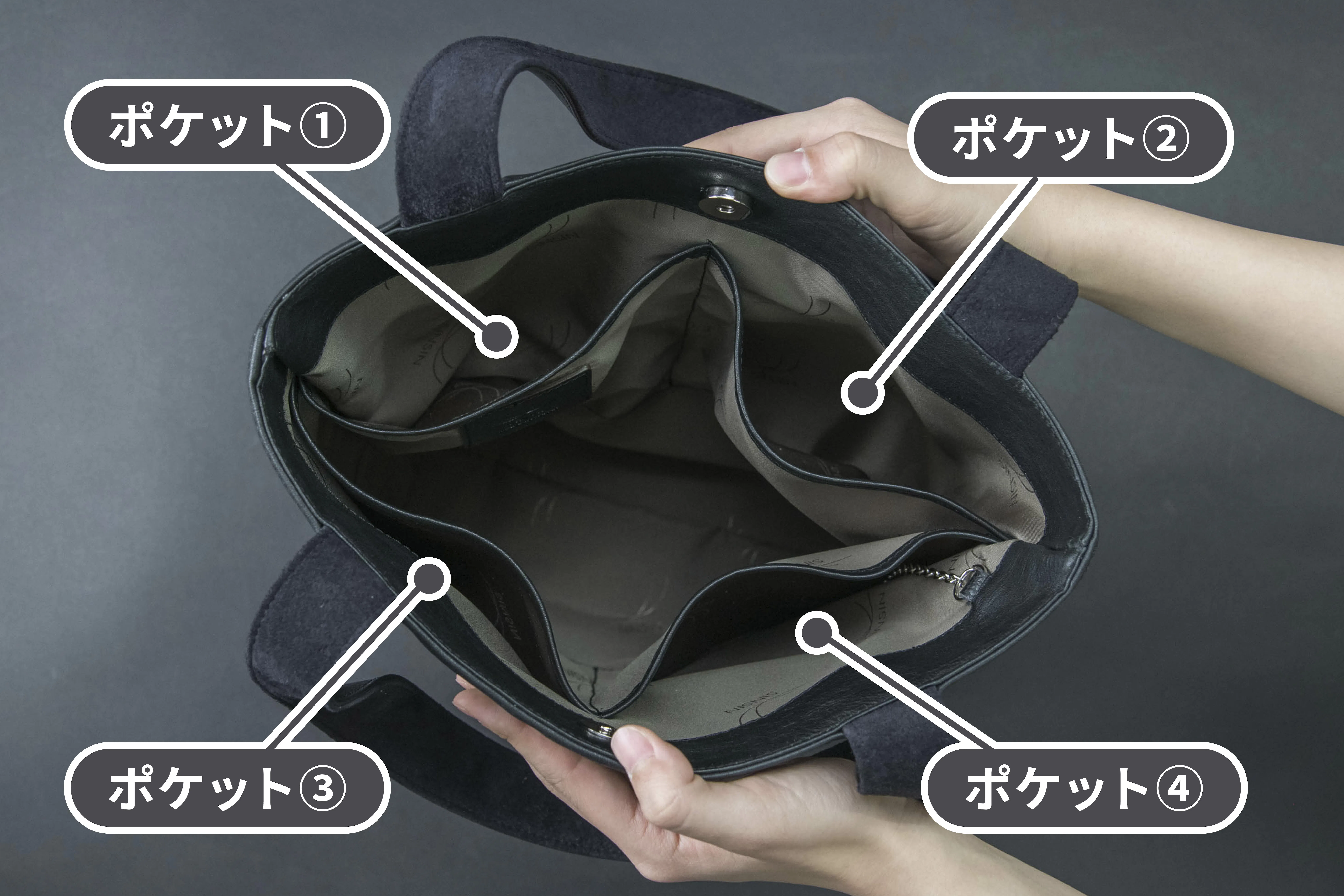 縦型トートでありがちな、「荷物がごちゃつく…」「下にある物が取り出しにくい!」という事が解消され、素早く物を取り出すことができます。