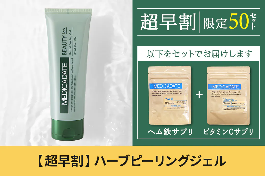 さらに50名限定でMEDICADATE(メディカデイト)ヘム鉄サプリメントとMEDICADATE(メディカデイト)ビタミンCサプリメントをセットでお送りさせていただきます。