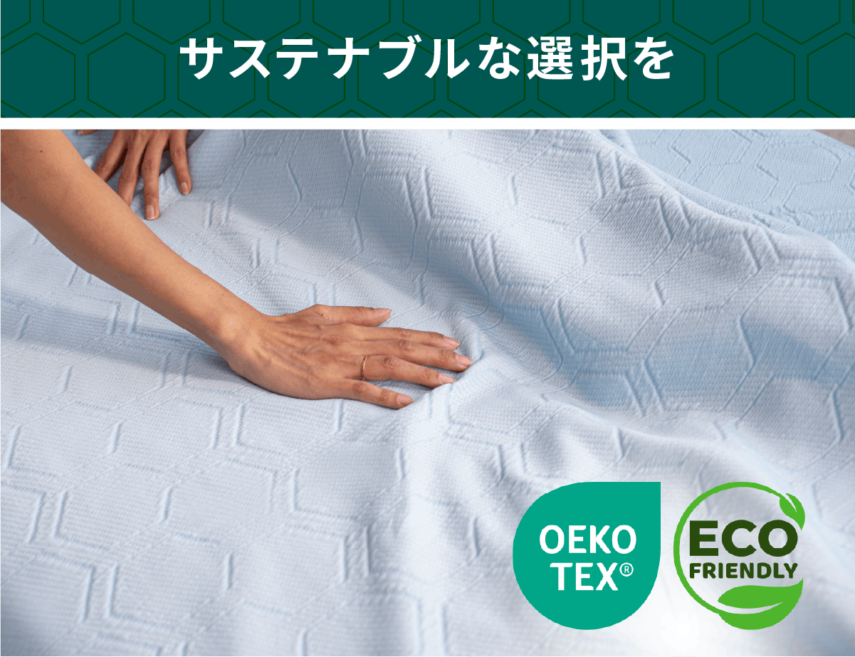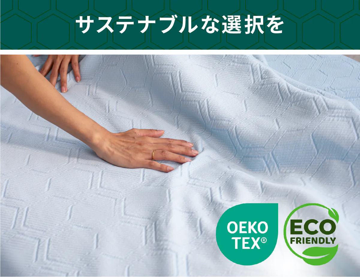 HILU Bluvetは、OEKO-TEX認証(繊維製品の安全性に関する国際的な認証システム)を受けています。10年間の使用を想定した設計で、環境にも肌にもやさしい選択をお届けします。日々の睡眠時間が、地球へのやさしさにもつながります。