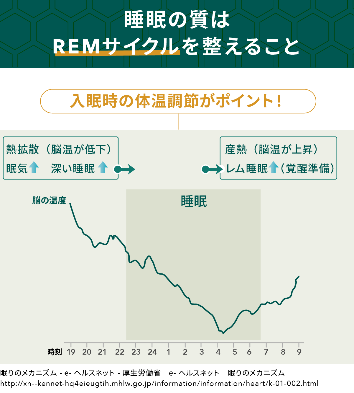 睡眠中に深部体温が自然に下がることで、深い眠りとREMサイクルがスムーズに促されることが科学的に知られています。体温調節を妨げない寝具を選ぶことが、睡眠の質を高める重要な鍵になります。