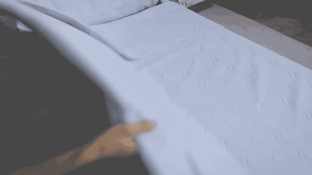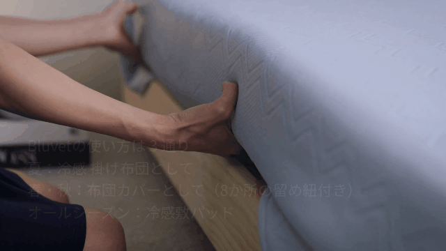 1年を通して敷パッドとしても活躍するHILU Bluvet。シーツのように敷布団、マットをくるんでお使いいただけます。