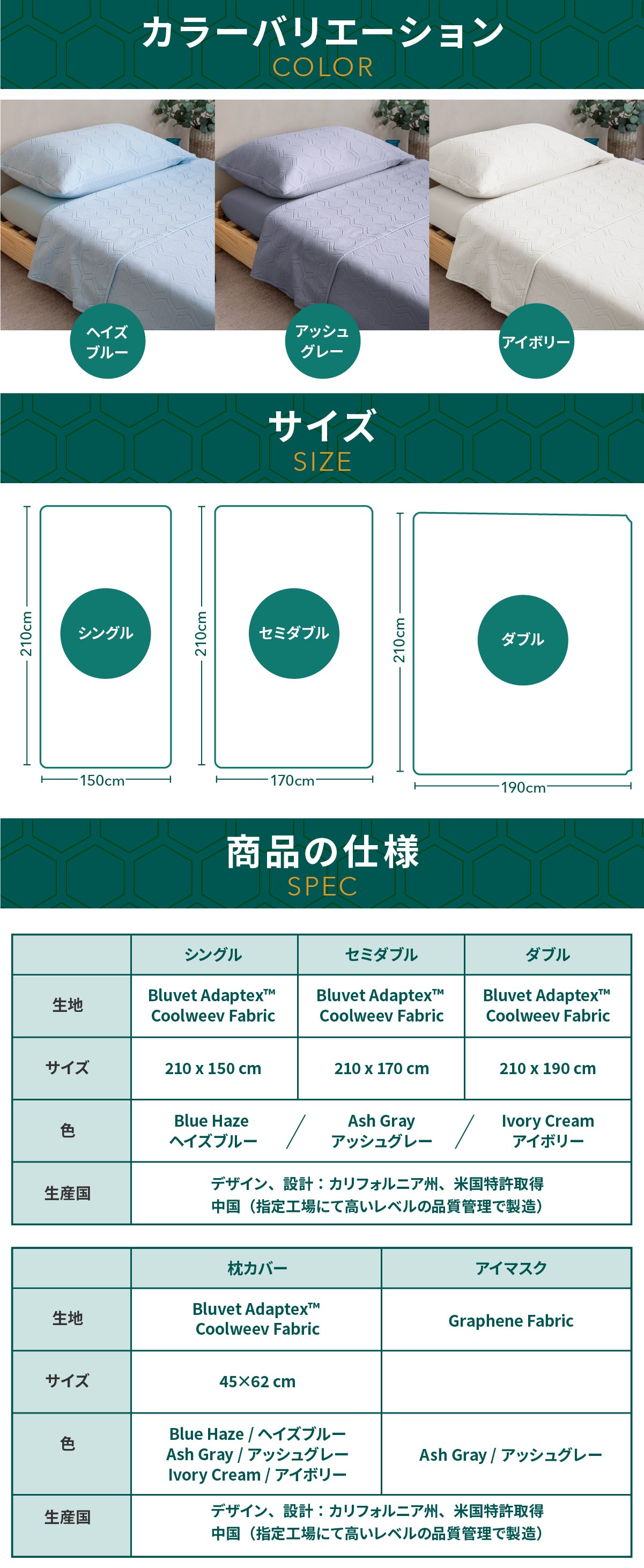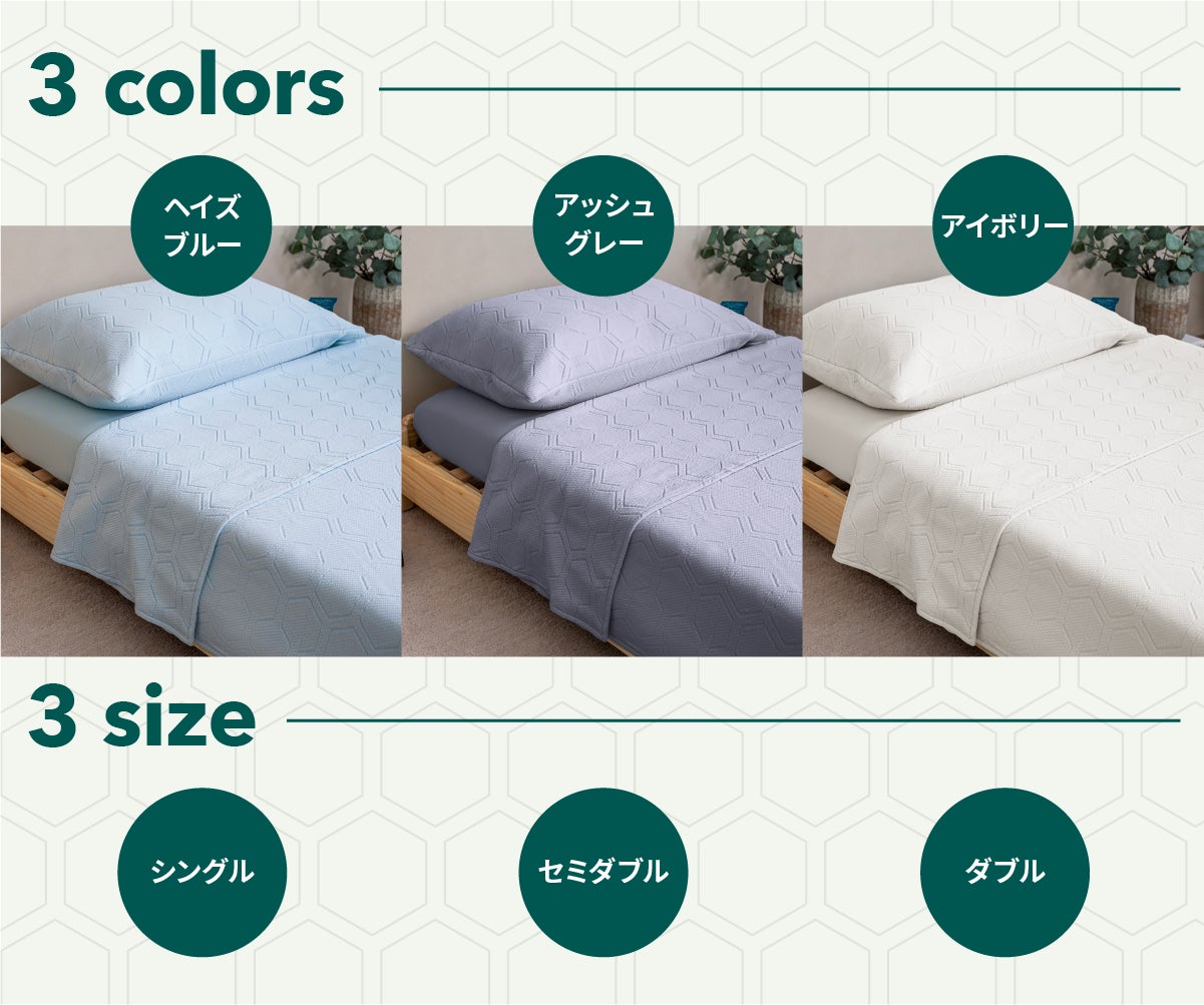 独創的なアイデアで、調湿ブランケットだけではなく、布団カバー、敷パッド(敷シーツ)としてもお使いいただけます。ひんやりとした肌触りでオールシーズン快適な夜をサポートいたします。