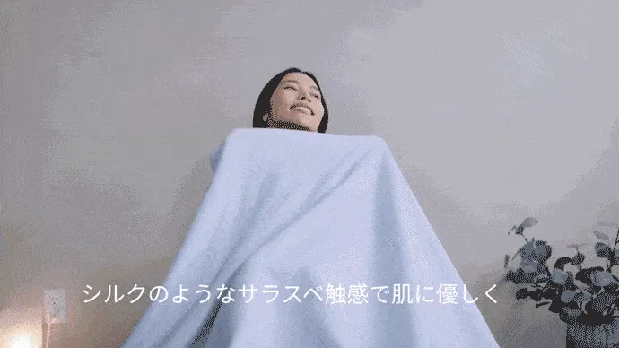 HiluBluvetはまさに「新触感」今までにないサラスベな肌触りが一晩中続きます。。それはまるでシルクのようなしっとり感。