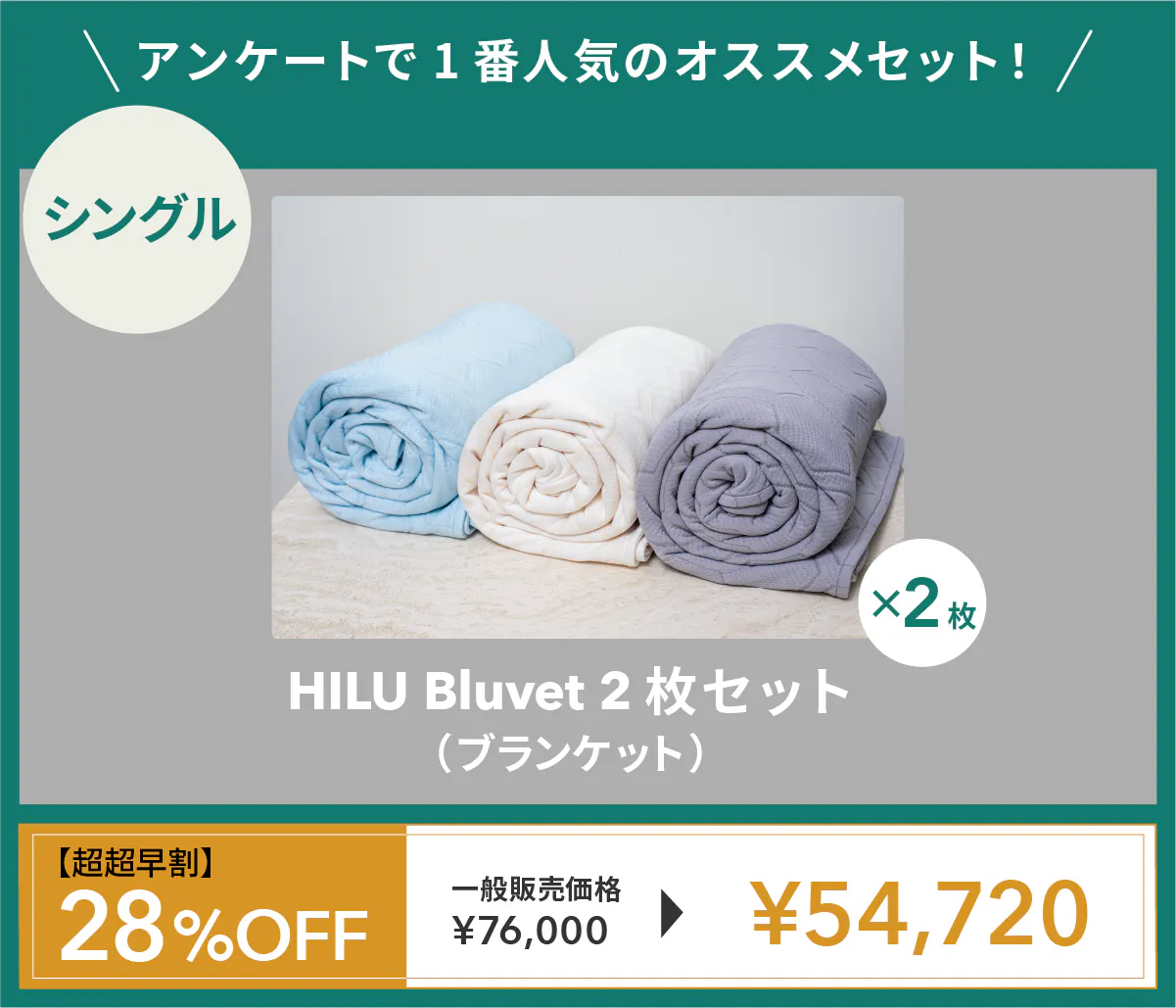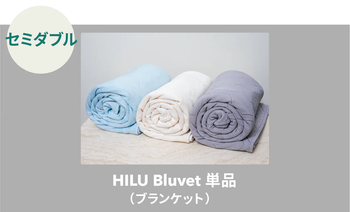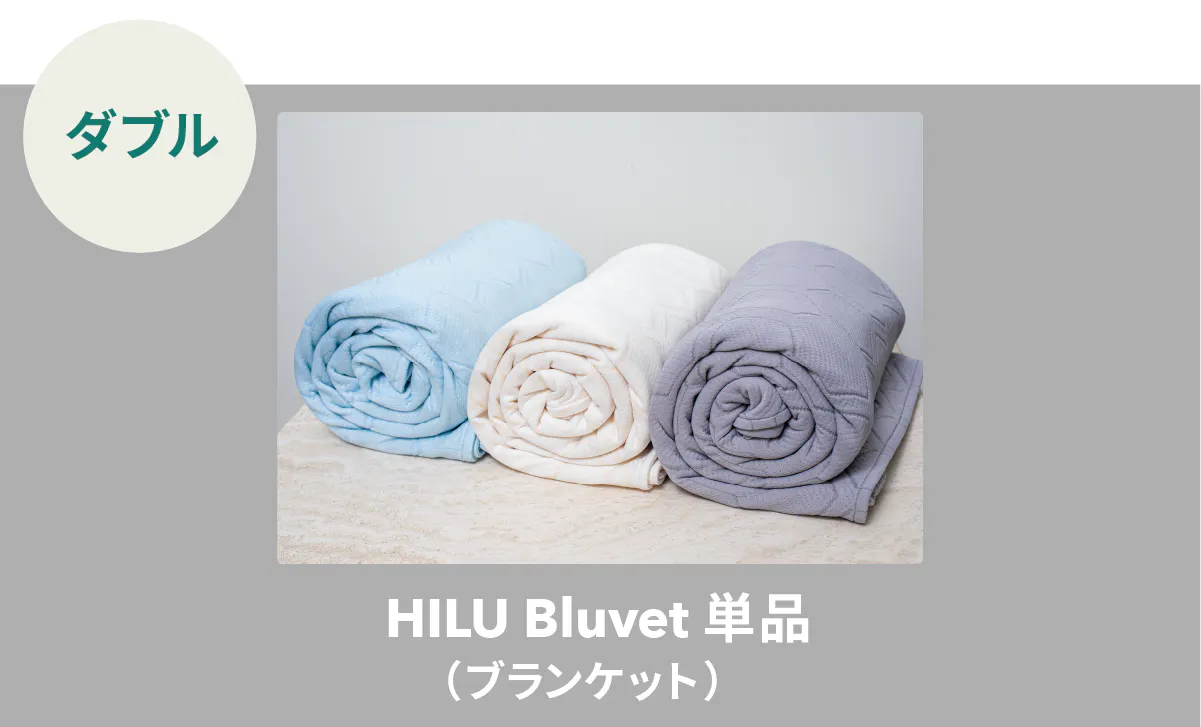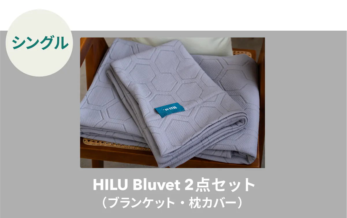 HILU Bluvet(ヒルブルベット)は睡眠中の寝汗、布団内のムレに寄り添い、快眠をサポートする寝具です。