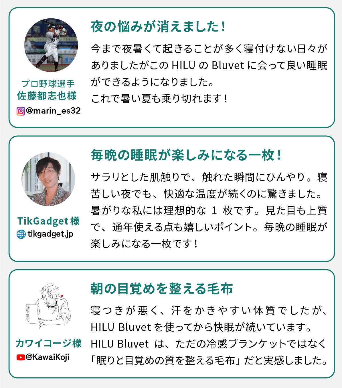 2025/09/17 19:39こんばんは。HILU運営チームです。YouTube『in living.』さん が、「【 BEST BUY 】最近の本当に買ってよかった購入品5選」に HILU Bluvetを選んでくださいました。動画内では、「汗だく眠の方にオススメ」「思った以上に気に入った」とご紹介いただいております。 想像以上の寝心地 しっとりとした触り心地 優れた接触冷感 ぜひ動画もご覧ください!https://youtu.be/wmfGl37sDHU?si=1Zqaw6wI00kaP8EC&t=122まだまだ残暑厳しい毎日ですが、HILU Bluvetは涼しくなってもしっとりとした肌触りの布団カバー、敷カバーとしてお使いいただけます。引き続き、皆さまに快適な眠りをお届けできるよう活動を進めてまいります。▼プロジェクトページはこちらhttps://camp-fire.jp/projects/837319/view皆さまのご支援を、心よりお待ちしております。HILU Japan 一同最新情報は公式SNSでも配信中!【公式SNS】𝕏(旧Twitter) :https://x.com/hilujapanInstagram :https://www.instagram.com/hilujapan/Facebook :https://www.facebook.com/profile.php?id=61576802175429LINE :https://lin.ee/H7DJipq もっと見る