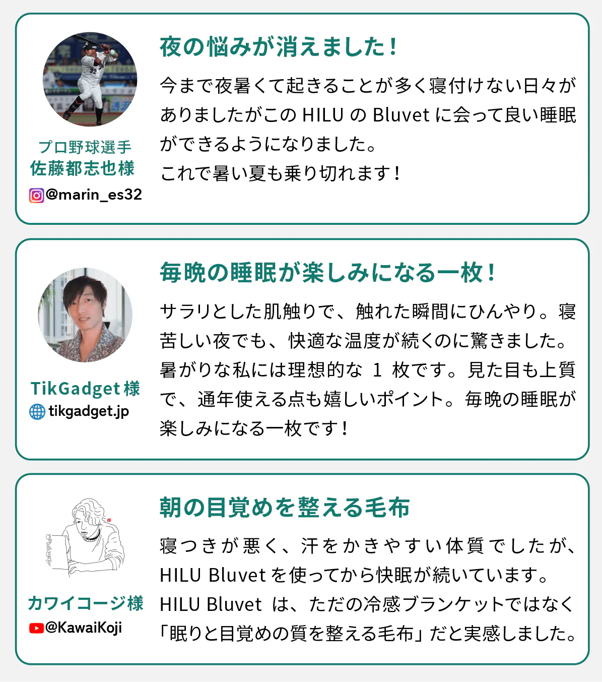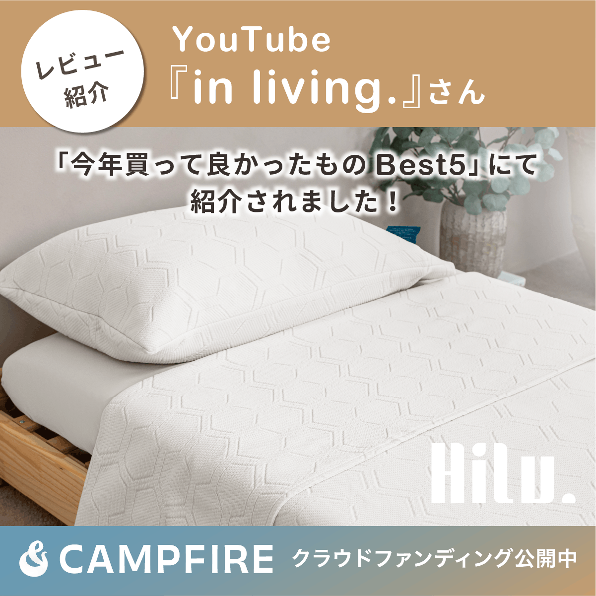 2025/09/17 19:39こんばんは。HILU運営チームです。YouTube『in living.』さん が、「【 BEST BUY 】最近の本当に買ってよかった購入品5選」に HILU Bluvetを選んでくださいました。動画内では、「汗だく眠の方にオススメ」「思った以上に気に入った」とご紹介いただいております。想像以上の寝心地しっとりとした触り心地優れた接触冷感ぜひ動画もご覧ください!https://youtu.be/wmfGl37sDHU?si=1Zqaw6wI00kaP8EC&t=122まだまだ残暑厳しい毎日ですが、HILU Bluvetは涼しくなってもしっとりとした肌触りの布団カバー、敷カバーとしてお使いいただけます。引き続き、皆さまに快適な眠りをお届けできるよう活動を進めてまいります。▼プロジェクトページはこちらhttps://camp-fire.jp/projects/837319/view皆さまのご支援を、心よりお待ちしております。HILU Japan 一同最新情報は公式SNSでも配信中!【公式SNS】𝕏(旧Twitter) :https://x.com/hilujapanInstagram :https://www.instagram.com/hilujapan/Facebook :https://www.facebook.com/profile.php?id=61576802175429LINE :https://lin.ee/H7DJipq もっと見る