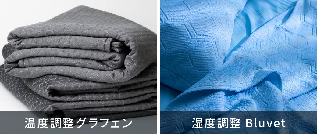 温度を調整をサポートする「グラフェンブランケット」と湿度調整をサポートする「Bluvet」で1年中快適な眠りをサポートします。