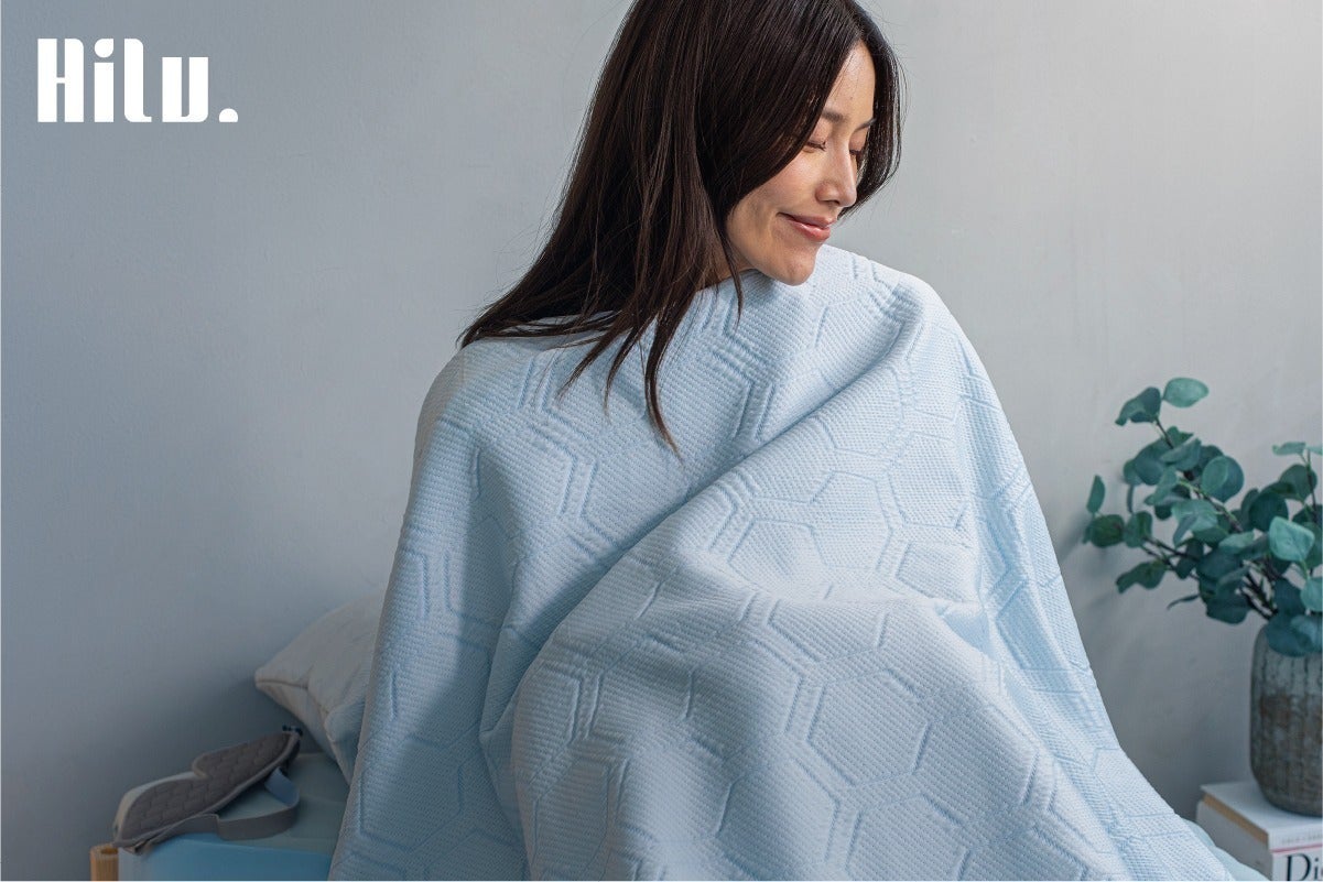 HILU Bluvetは、体が発する熱と湿気をすばやく逃がす独自素材で、寝汗やムレの不快感を軽減。翌朝スッキリと目覚め、日中の集中力まで整える、新しい快眠のかたちです。