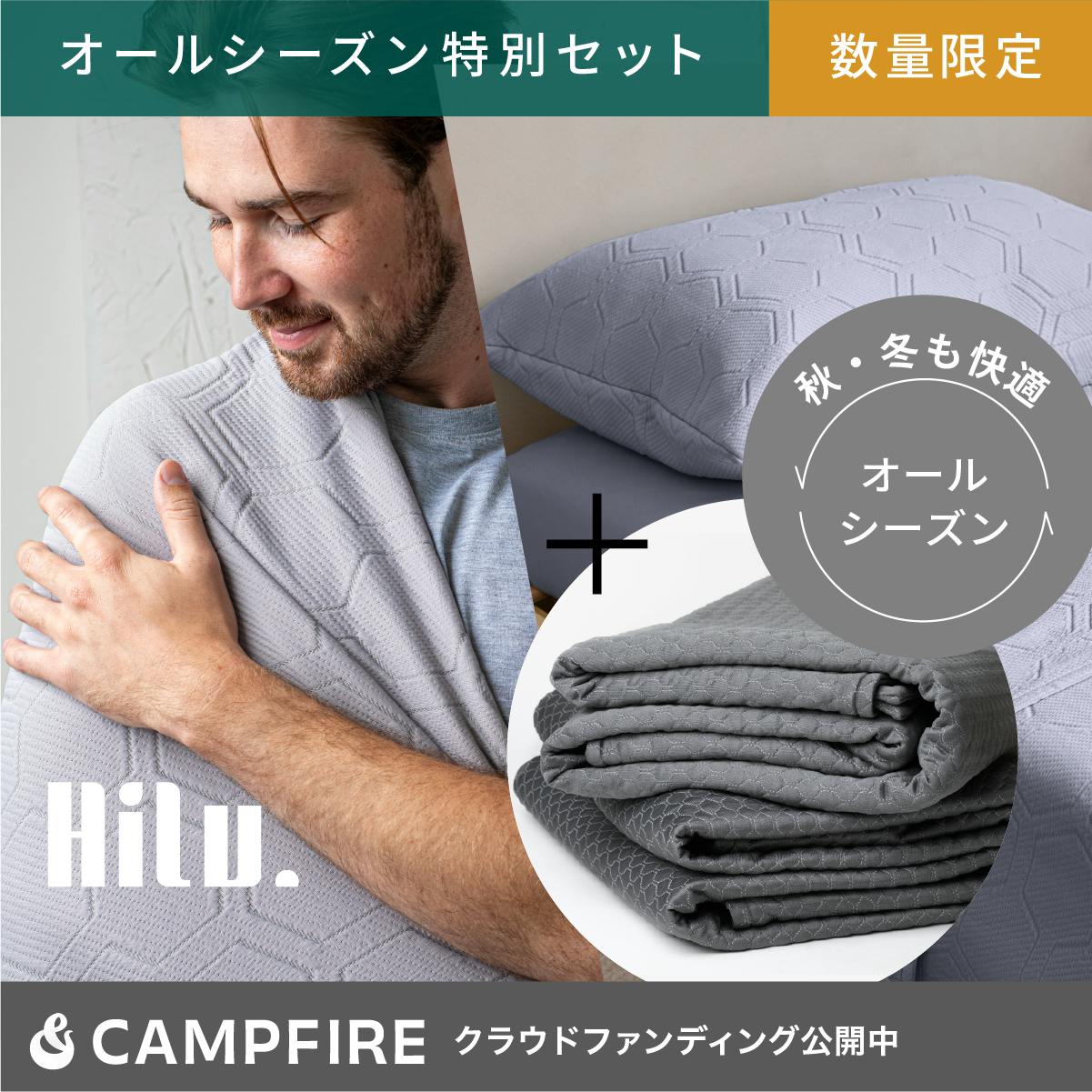 HILU Bluvetをグラフェンブランケットのカバーとして組み合わせることで、 夏はひんやり、冬はあたたかく、一年中快適にお過ごしいただける特別プランです。