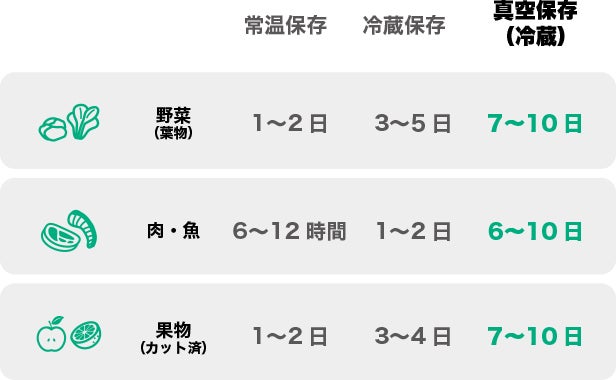 食材を適量に詰めることで、真空状態がうまく作れます。容器に余裕を持たせて保存し、鮮度を長期間保ちましょう。