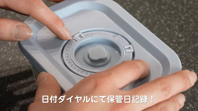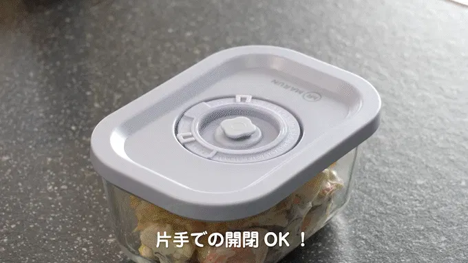 A:食材を適量入れ、蓋をしっかりと閉めて密封してください。容器が満杯だと真空保存が難しくなるため、少し余裕を持たせて保存してください。
