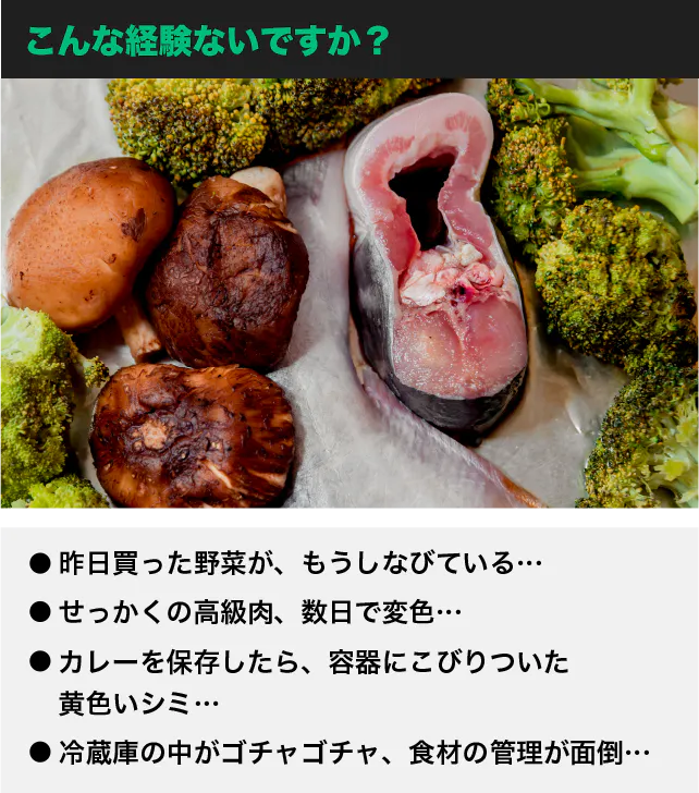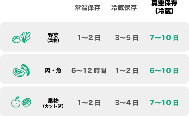 食材を適量に詰めることで、真空状態がうまく作れます。容器に余裕を持たせて保存し、鮮度を長期間保ちましょう。