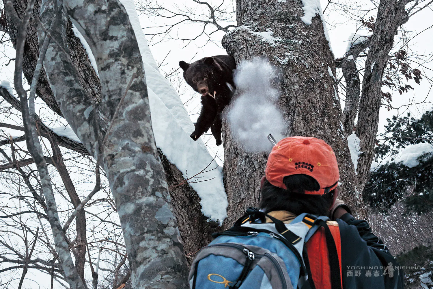 猟師と熊が対峙する瞬間の写真もあります。