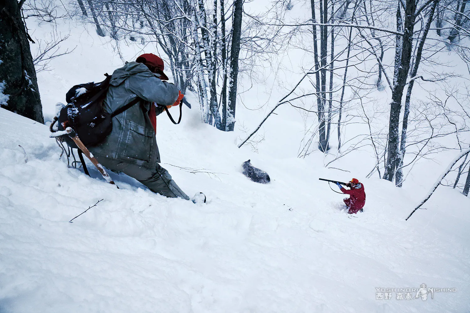 雪山の狩猟に同行して撮影されたもので、狩猟現場の貴重な写真が多数収められています。