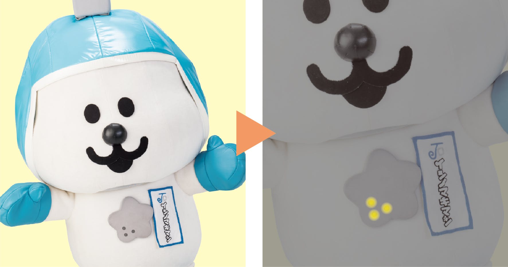 「イシノマキマン」の一部に、蓄光加工や夜光反射素材を使用して、暗闇でほんわり光加工を施します。