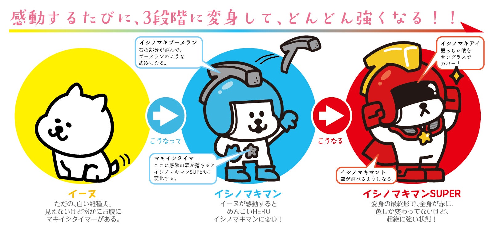 「イシノマキマン」は、2015年8月に誕生した、感動をエネルギーに3段階に変身する、石巻市のご当地ヒーローです。