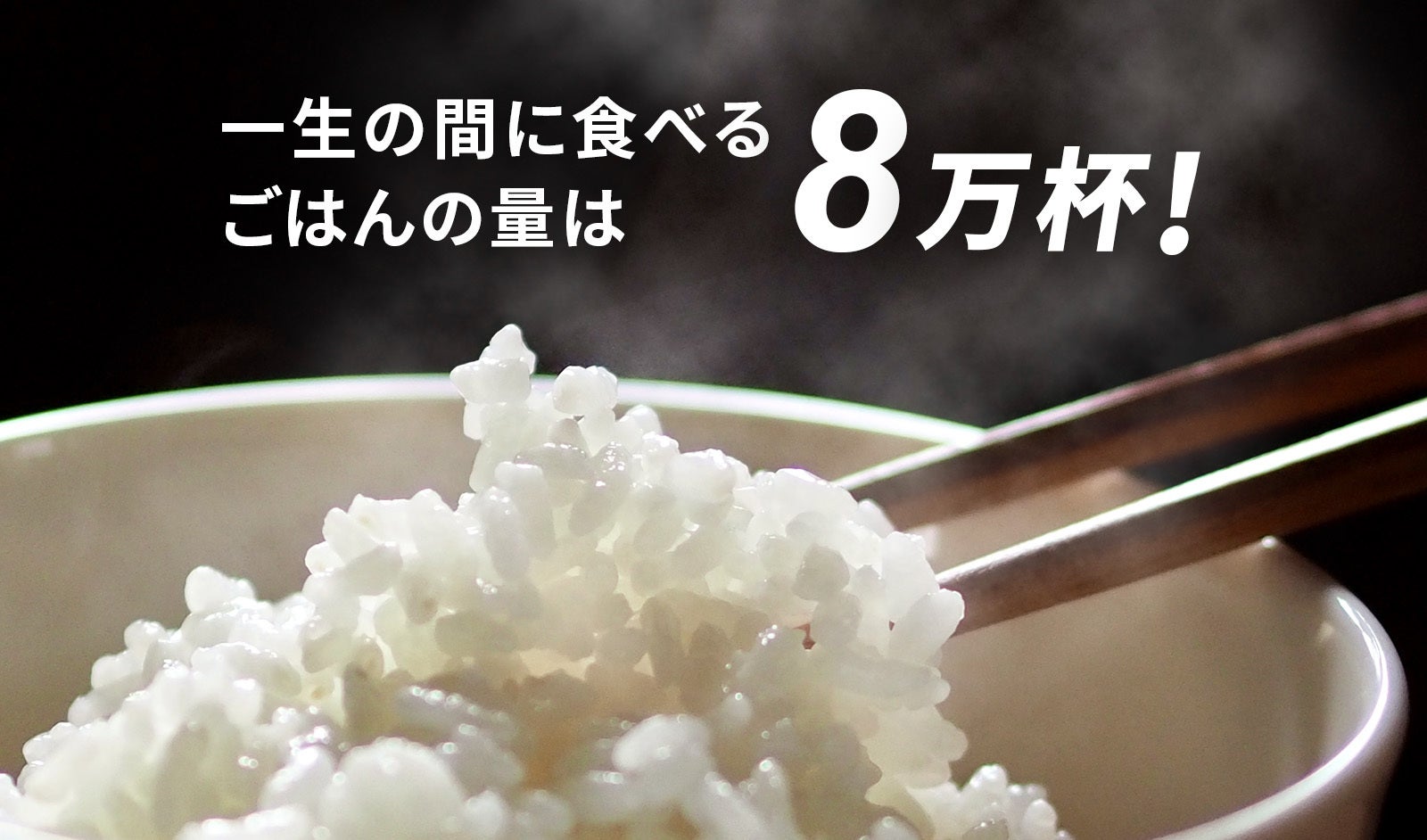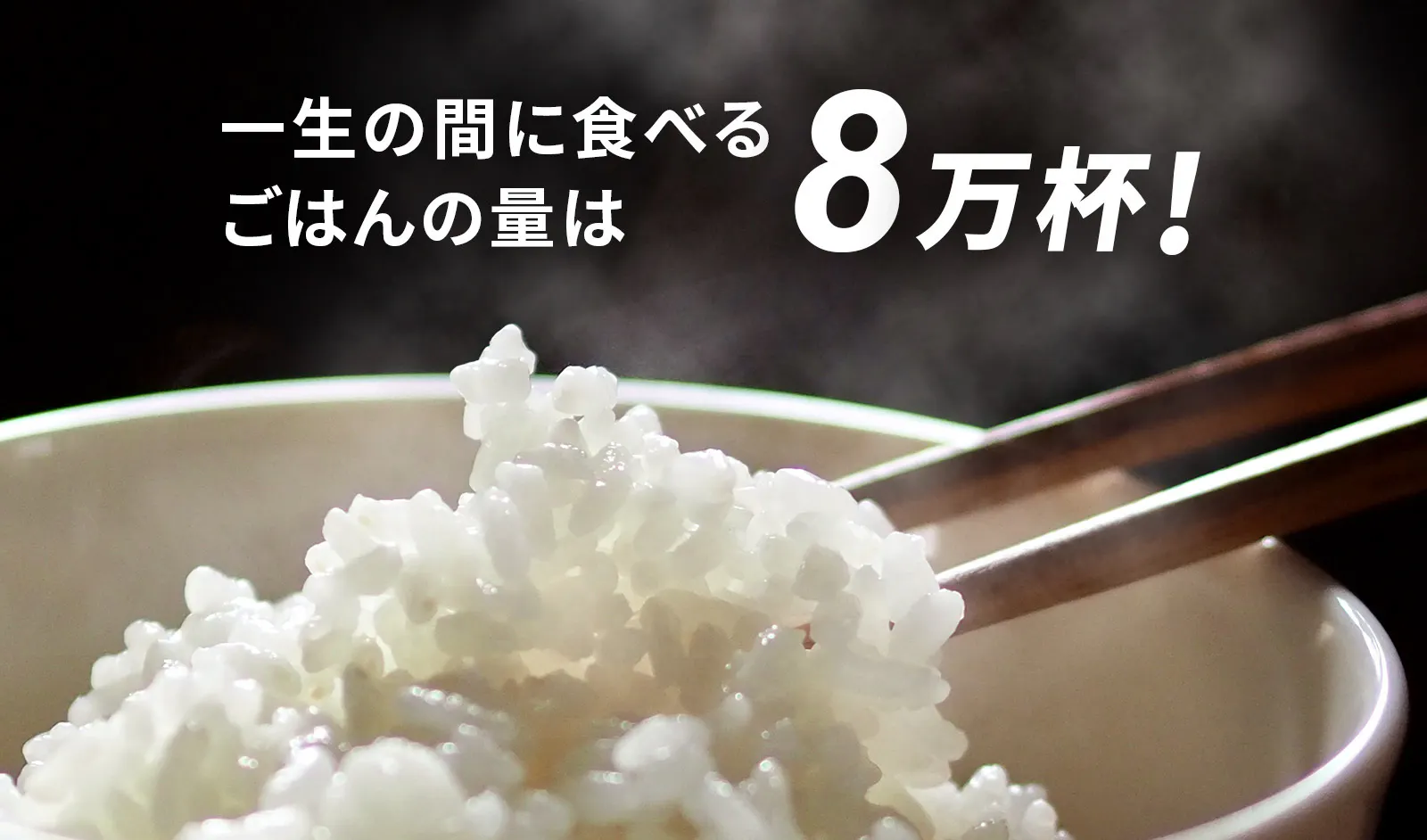 1日3食、80年食べ続けたとして、人が一生の間に食べるごはんは、お茶碗8万杯分もあるそう。