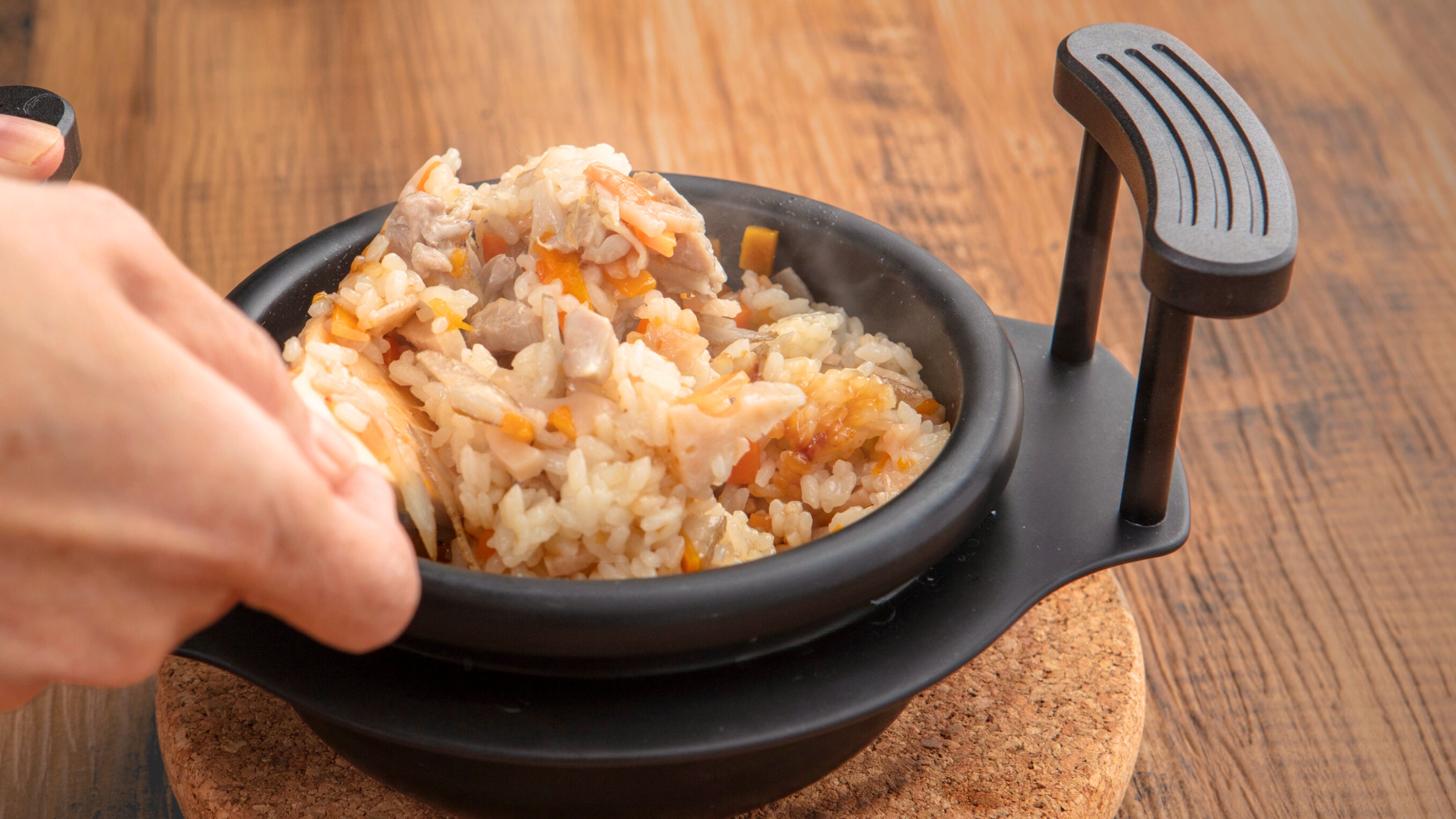 圧力鍋を使ってごはんを炊くということは「お米をより高温で炊く」ということ。これによりお米のデンプンがよりしっかりアルファ化(糊化)するため、もっちり甘く仕上がりやすくなります。普通の100℃の炊飯では出せない味や食感が引き出されるのです。