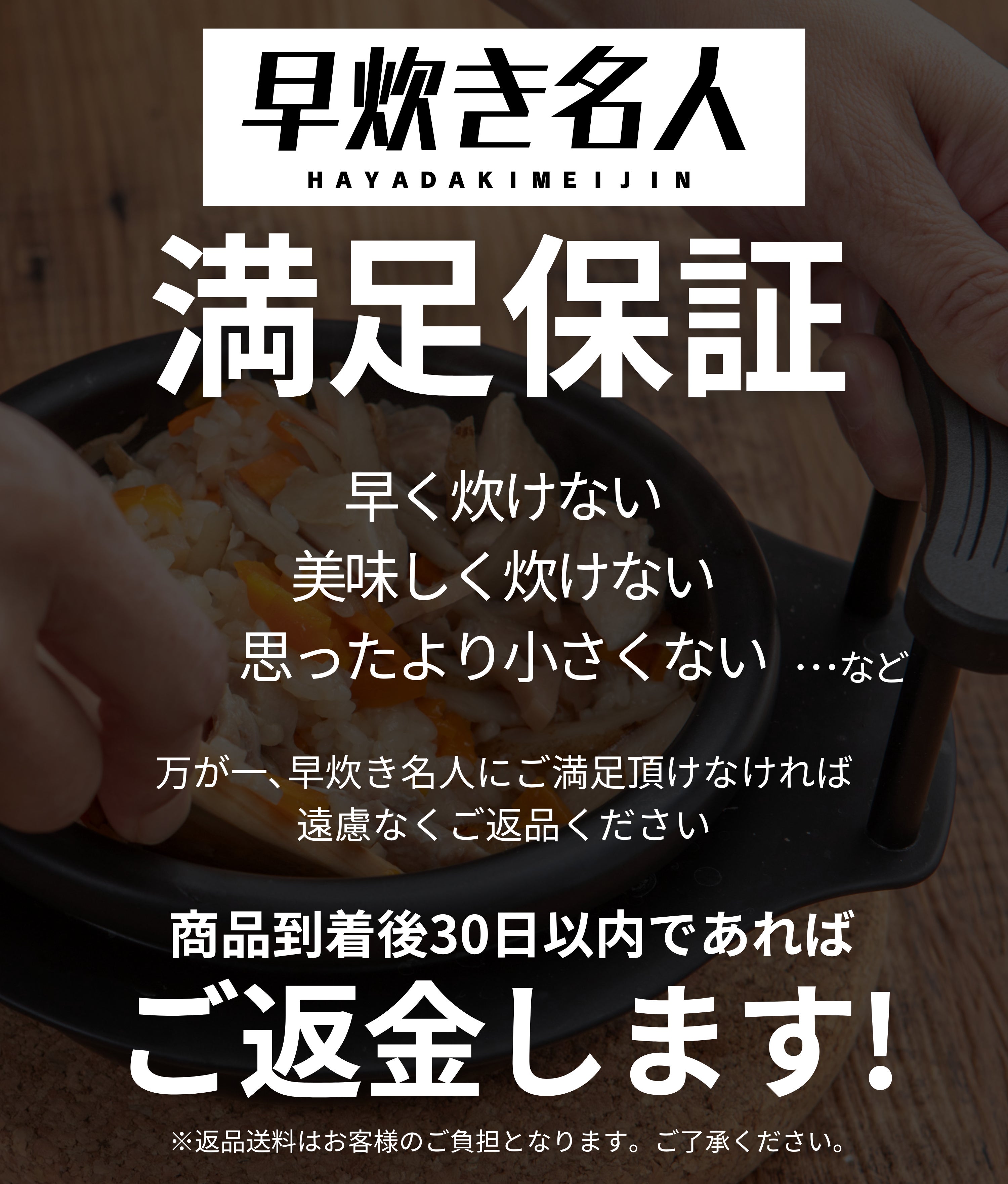 つまり、約1ヶ月はお試し感覚で使って頂けるということ!もし気に入らなければ返品できるなら、「超速炊飯」「圧力調理」に挑戦してみたくなりませんか?