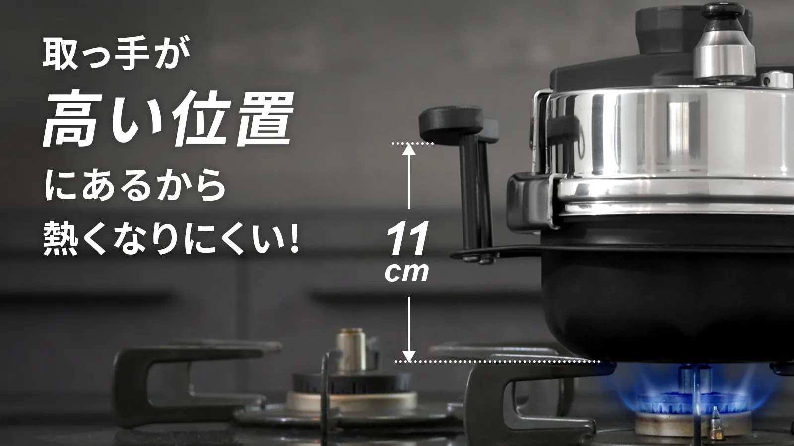 コンパクトゆえに火が近くなることも考慮して、取っ手をなるべく高い位置にしました。